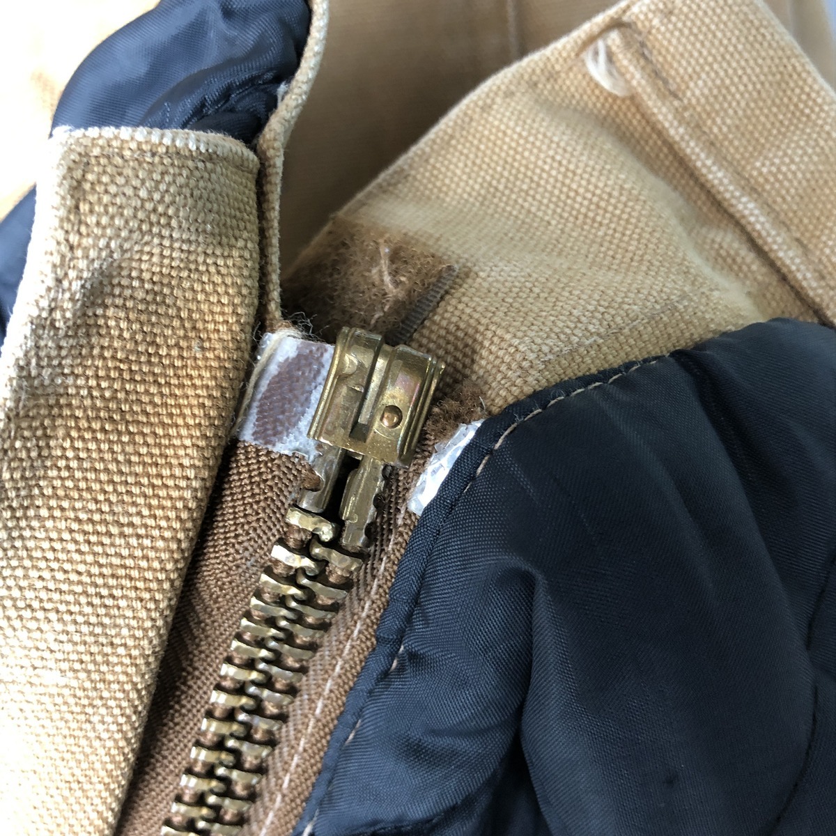 | 着用感: メンズXL 表記サイズ: 不明 着丈: 80.5cm 身幅: 70cm 肩幅: 55.5cm 袖丈: 71cm ![]() | ![]() ランク:C USEDワークアイテムですので使用感などございますが、まだまだご愛用していただけます。 古着という事をご理解の上ご注文よろしくお願いします。 【状態追記】 ●全体、色むら ●前、腹部に汚れ ●前、ジップエンドにダメージ ●後、背中・腰・両袖に汚れ ●後、右袖に糸引き ●後、左袖先に擦れ ●内、左脇下に糸抜け |