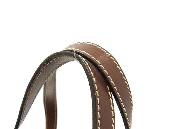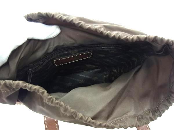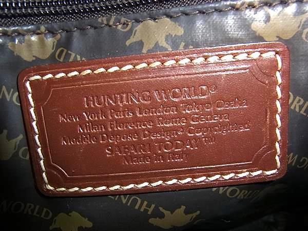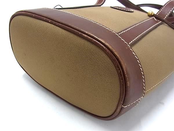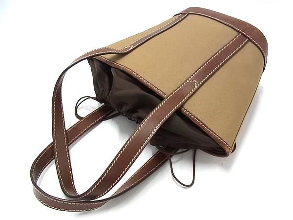 1円 HUNTING WORLD ハンティングワールド キャンバス×レザー 巾着 ハンドバッグ トート ショルダー 肩掛け カーキ系×ブラウン系 BN6245