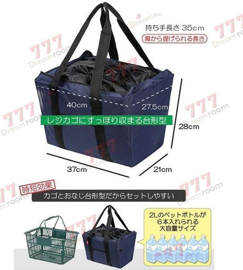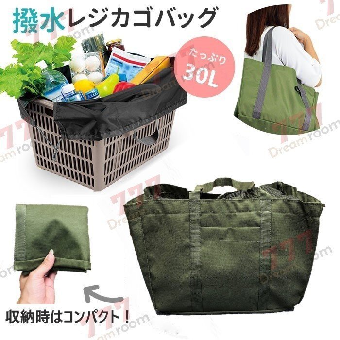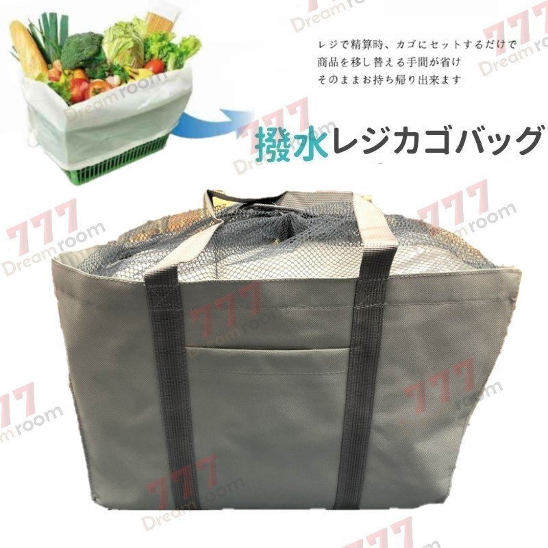 袋詰め不要!撥水 レジかごバッグ エコバッグ 大容量 30L 買い物かご 折りたたみ 丸洗いOK!F-224-02 グレー