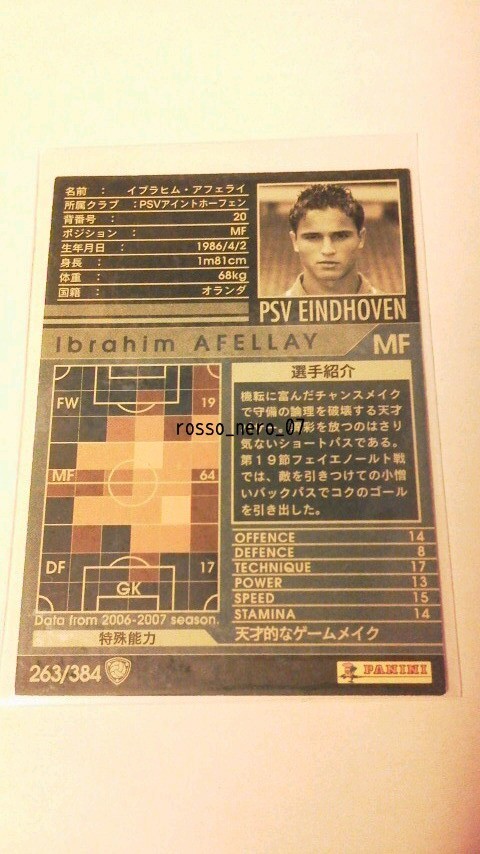 ☆WCCF2006-2007☆06-07☆263☆白☆イブラヒム・アフェライ☆PSVアイントホーフェン☆Ibrahim Afellay☆PSV Eindhoven☆