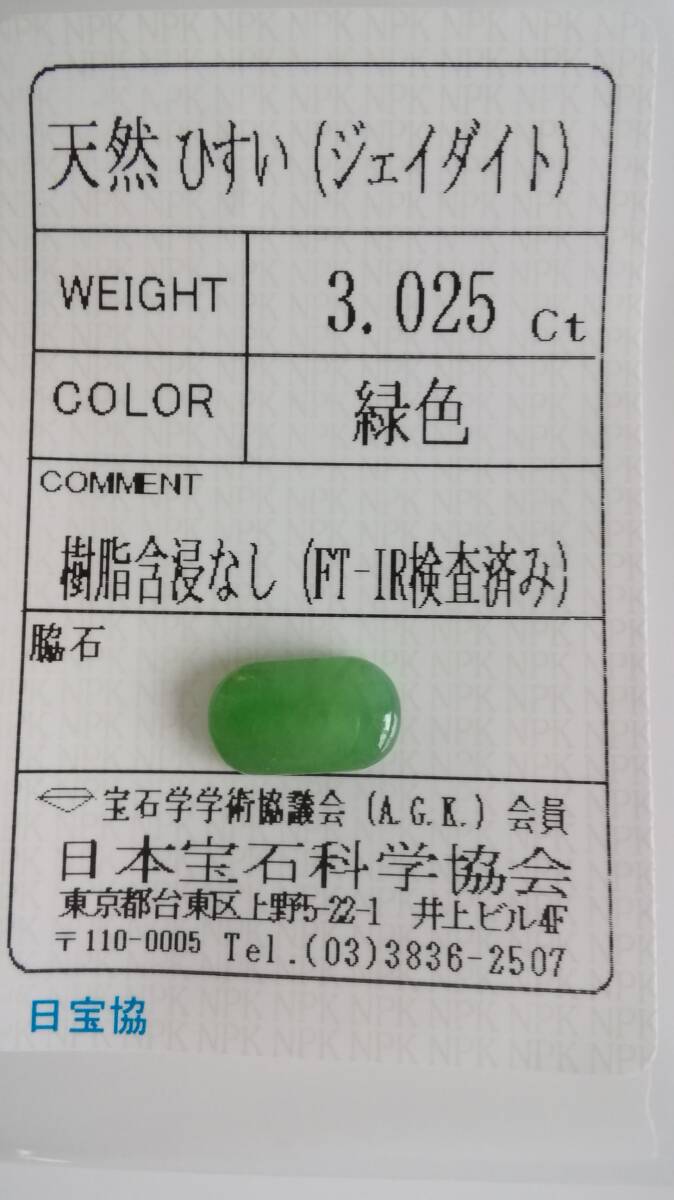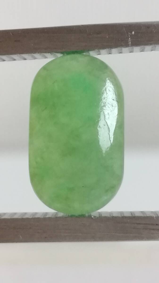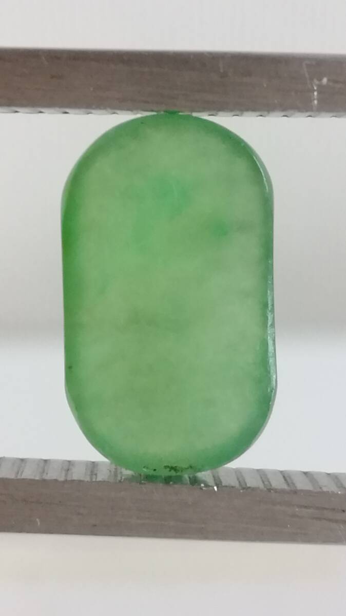 天然 小粒 翡翠 ルース ひすい(ジェイダイト)透き通る感あり 11.8x6.9x3mm、3.025ct ソーティング付き 難あり