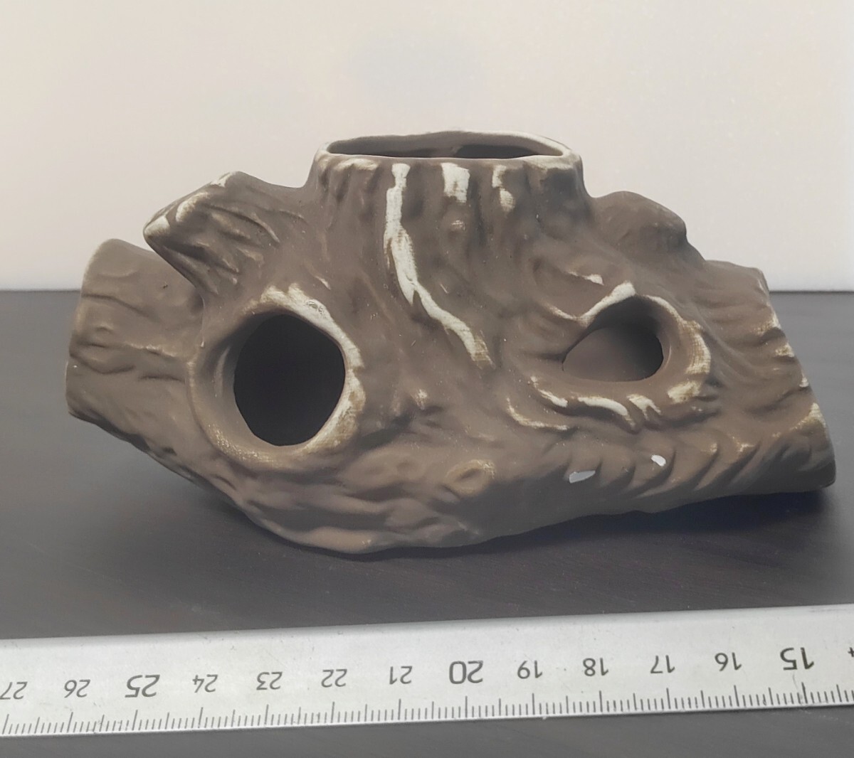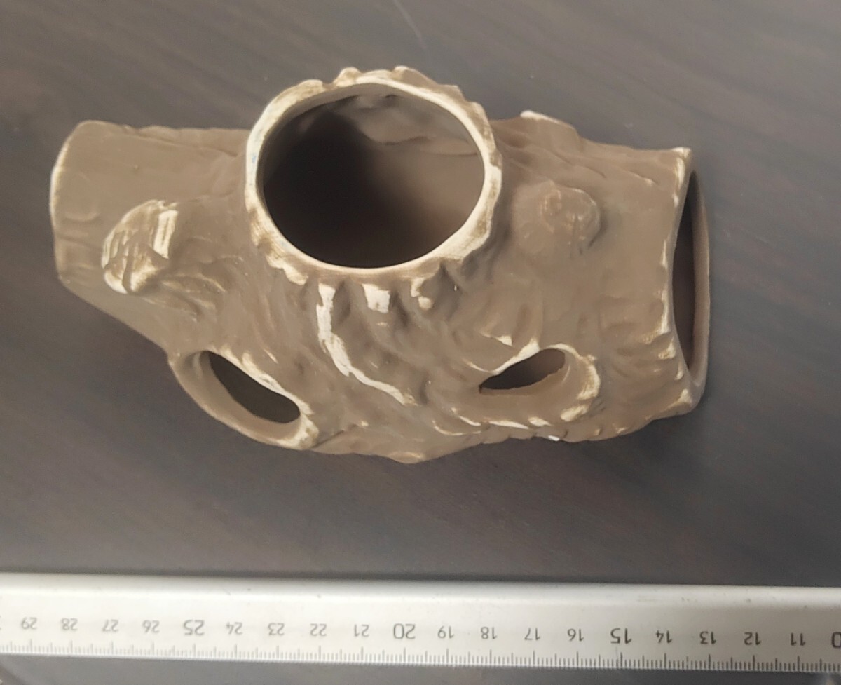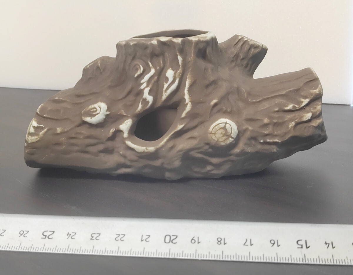 昔懐かしい陶器の水中アクセサリー  新木株 茶 中 ボ⑨ 幅160×奥行き90×高さ80mm  240g お宝品 4974230000097