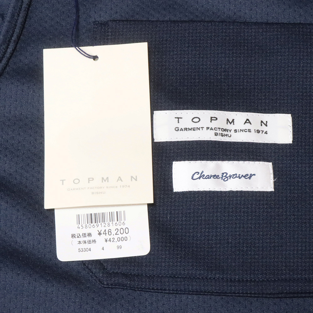 生産は、日本有数の織物産地・尾州「TOPMAN」製。細部にまで行き届いた確かな縫製で、永く付き合いたくなる一着に仕上がっています。