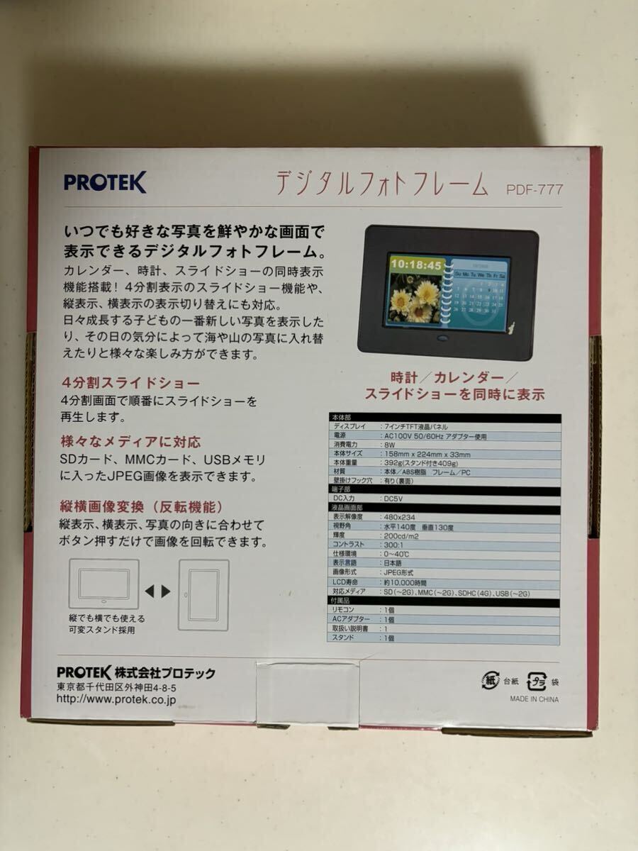 プロテック 7インチ液晶搭載 デジタルフォトフレーム PDF-777 カレンダー・時計・スライドショーの同時表示機能
