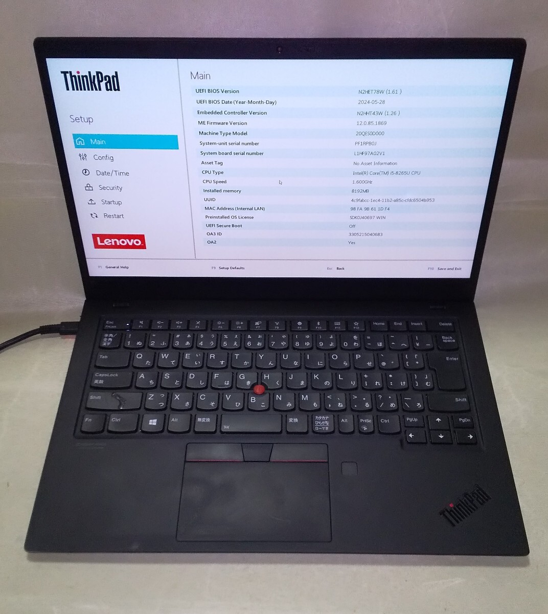 【Bios OK】 Lenovo ThinkPad X1 Carbon 20QE i5-8265U/8GB 第8世代 ⑩