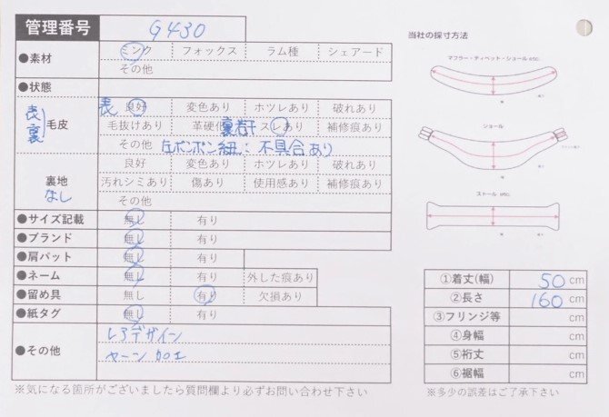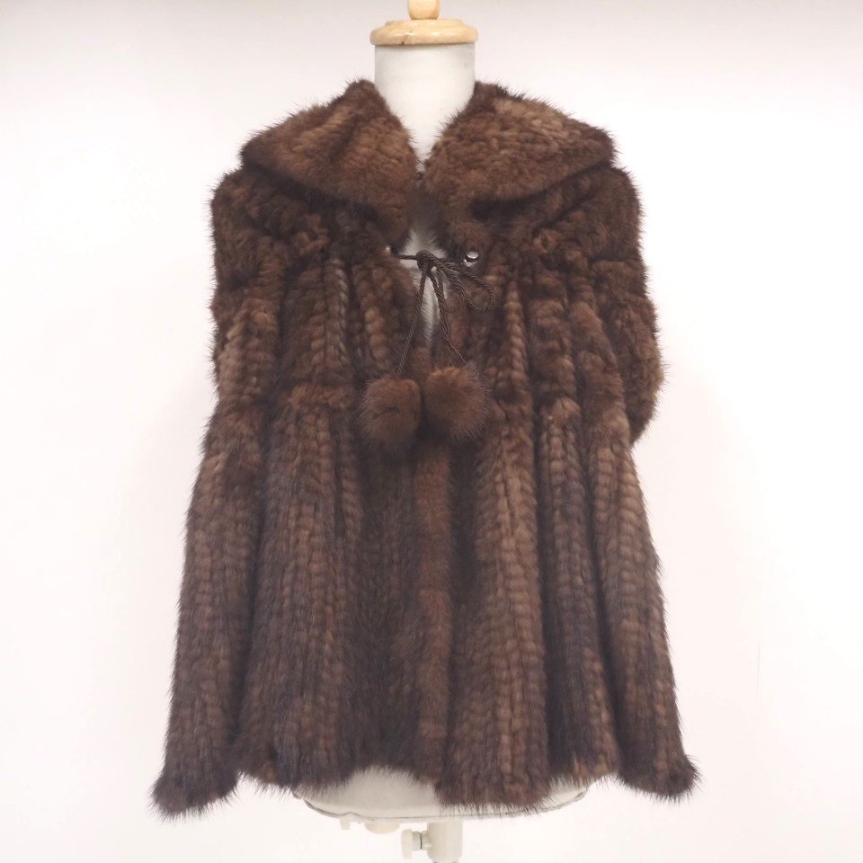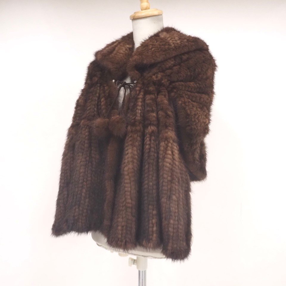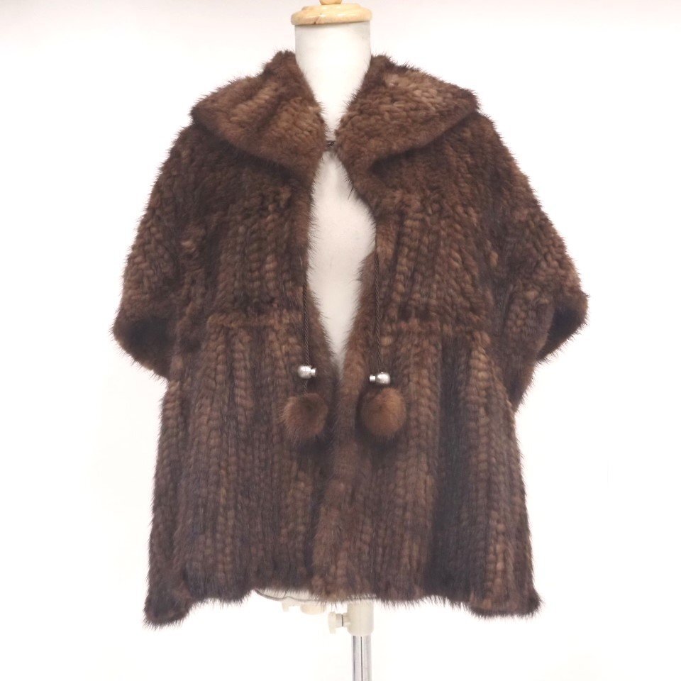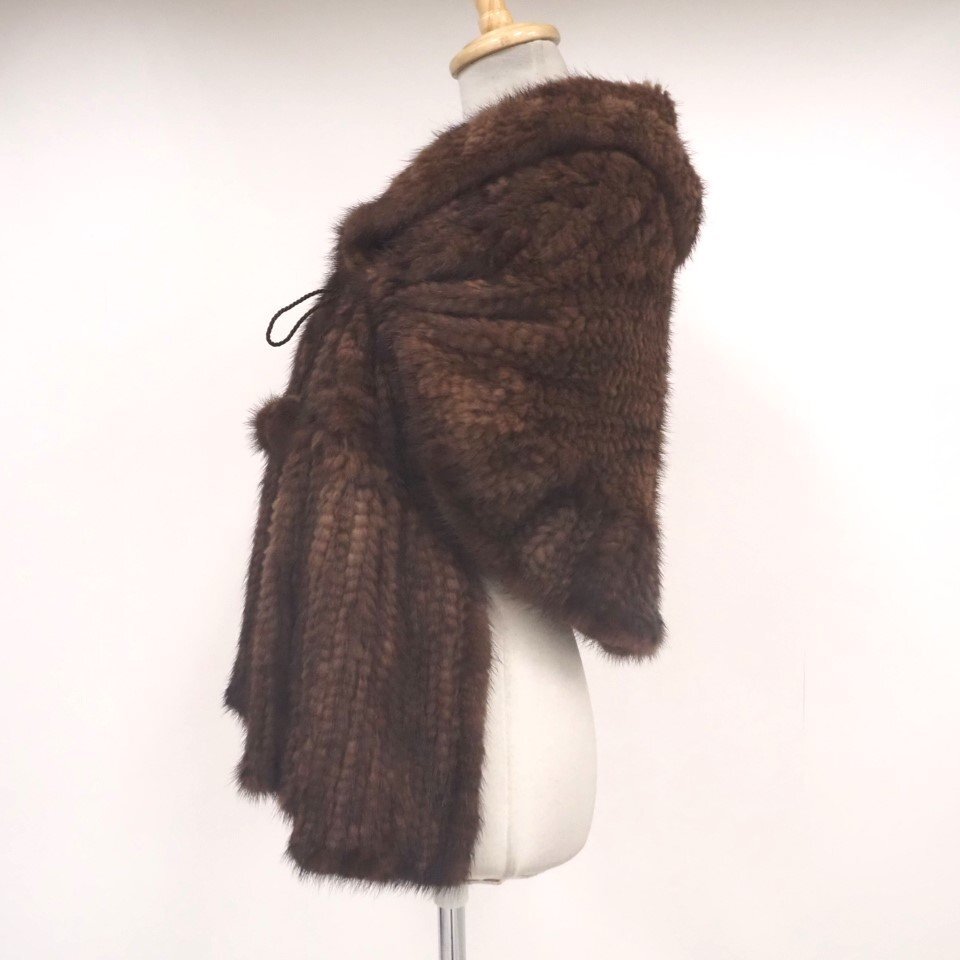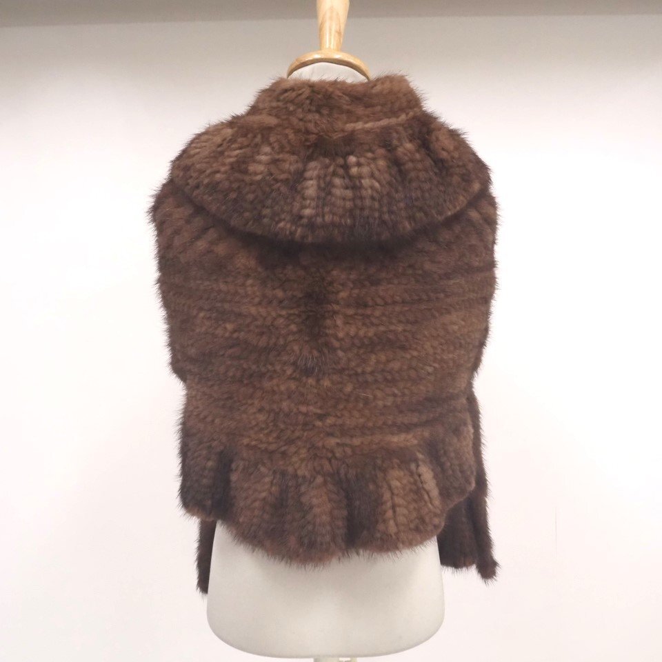 美品【 ¥1000~ / レアデザイン / ヤーン加工 / 裏地無し / 和装・洋装OK 】高級毛皮 ◆ミンク ◆ショール 丈:50cm ◆ブラウン ◆G430