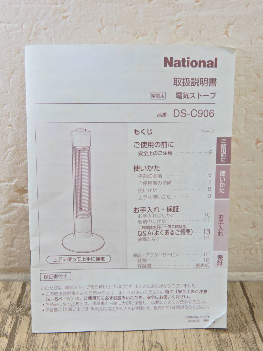 A2864★\1~National/ナショナル 家庭用 電気ストーブ/カーボンヒーター 900w model:D-C906