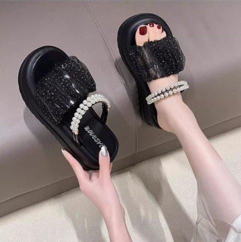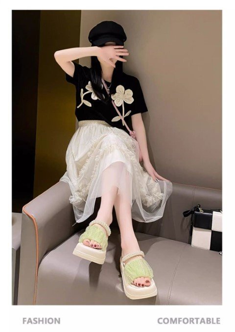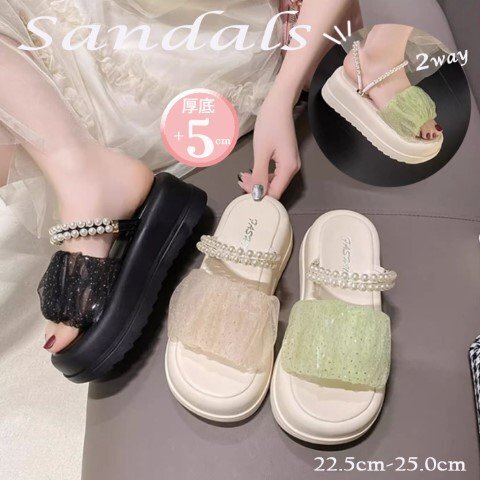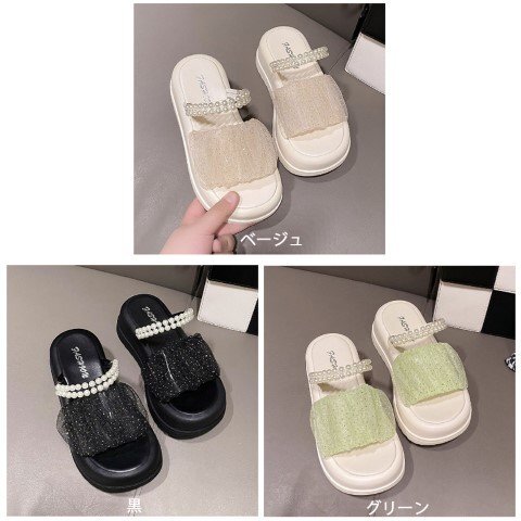 ・足元をパッと華やかに見せるキラキラチュールサンダル。