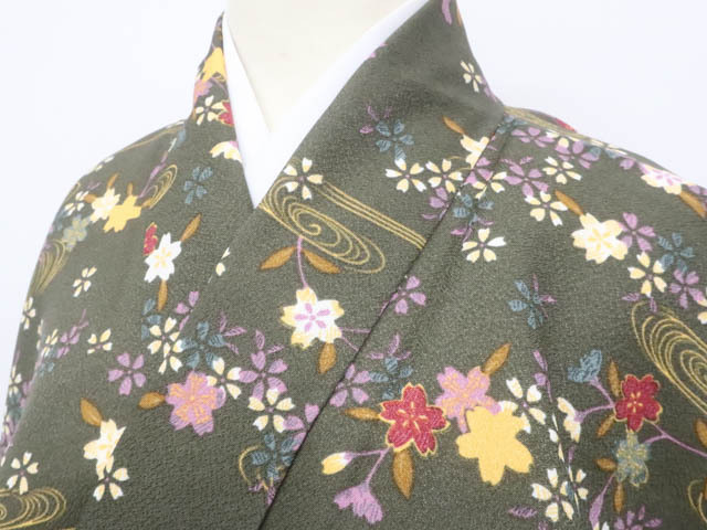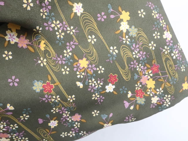 リサイクル商品のため、八掛にしみがございますがご着用いただけると存じます。 地色は灰緑です。 1枚目の画像が近いお色かと思われます。 素材はポリエステルです。 日本国内から発送いたしております。 発送後は追跡番号をお知らせいたします。 スタッフによる手作業での検品採寸済み。 |