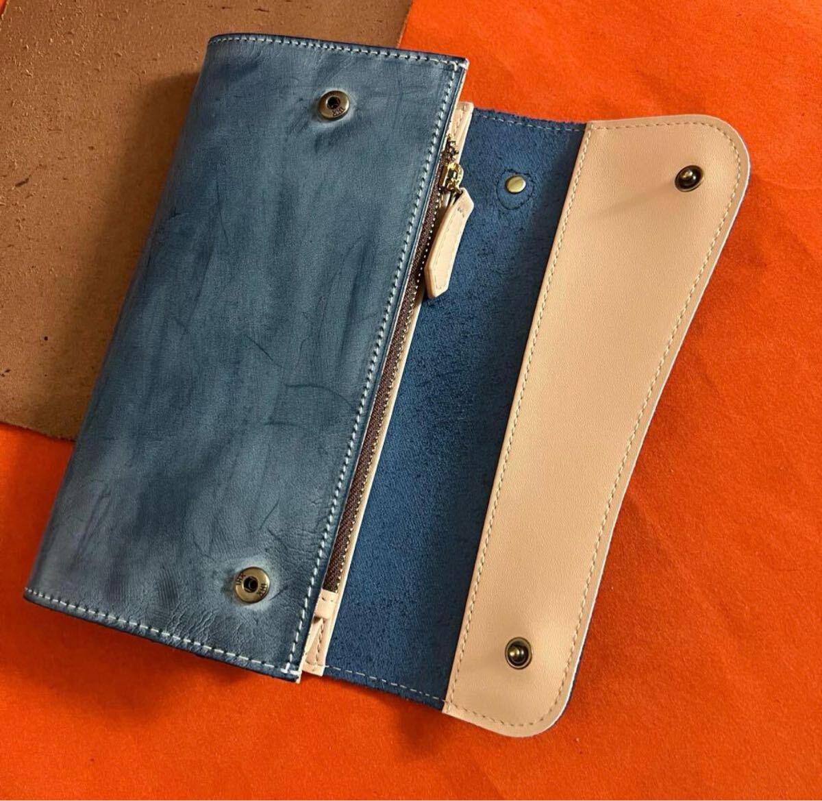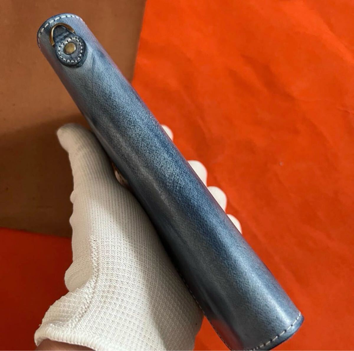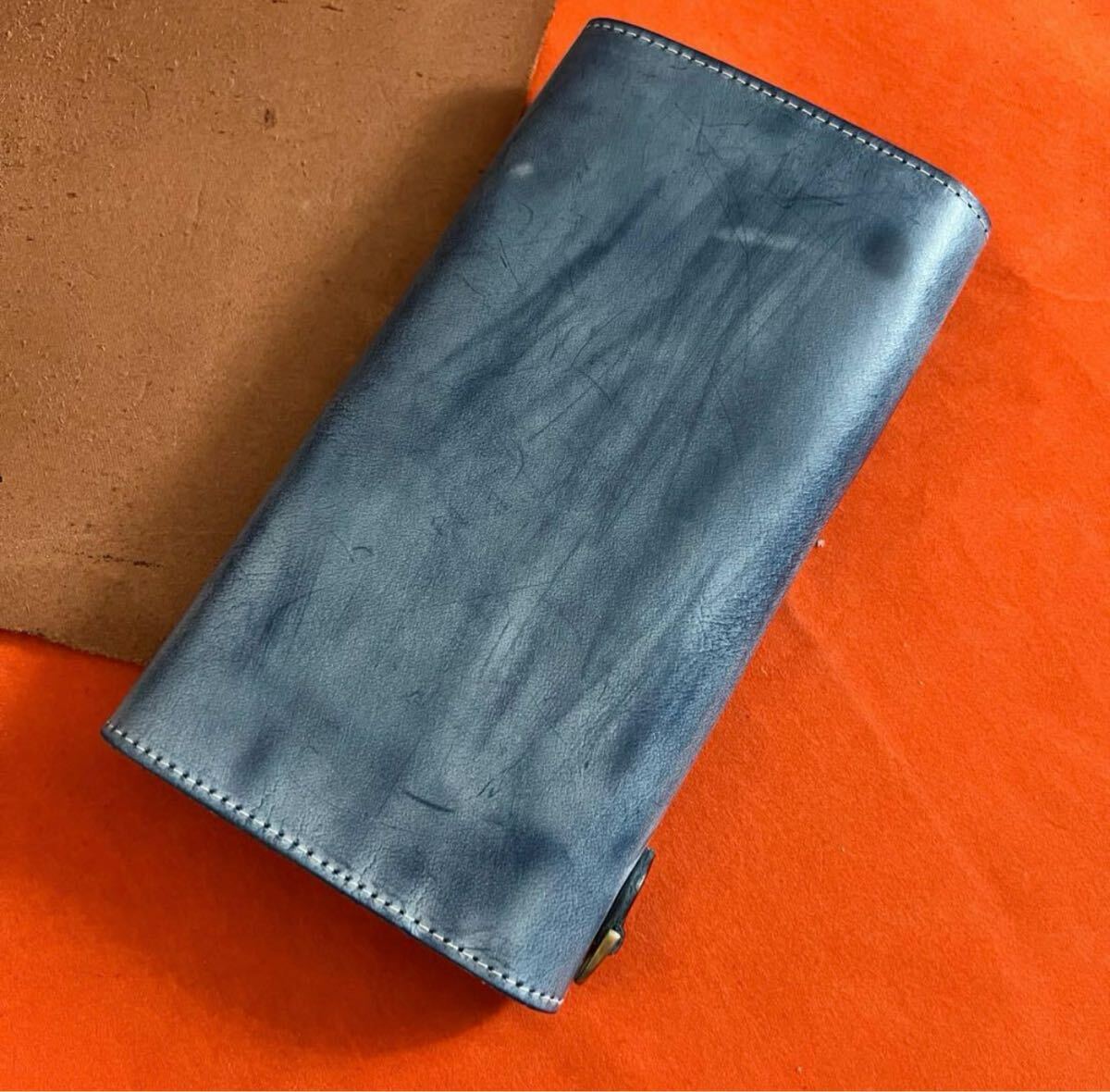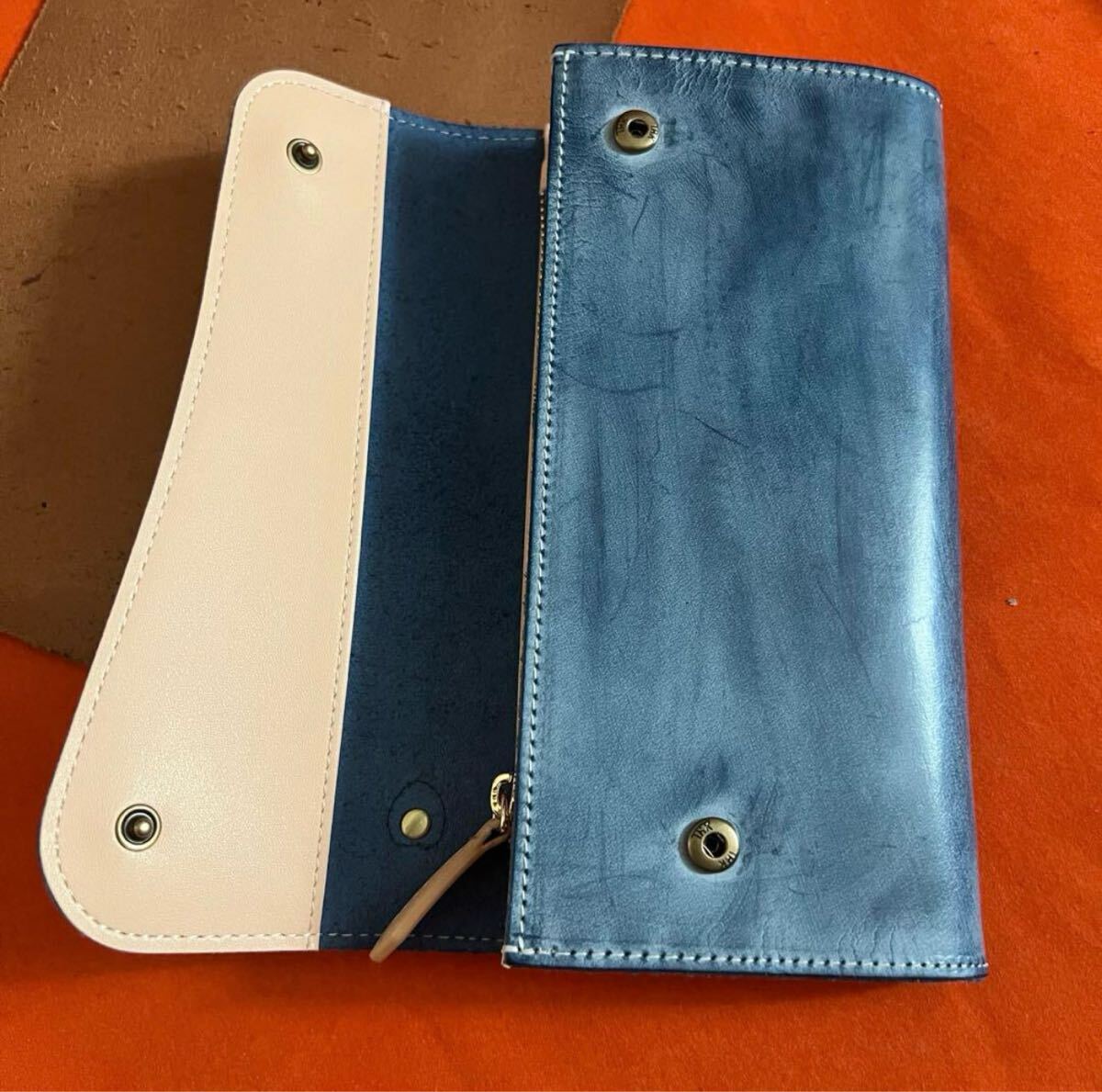 ※浮かび上がるロウにムラがあることや、縫い糸付近のミシン跡は、革に手を加えていない証拠です。