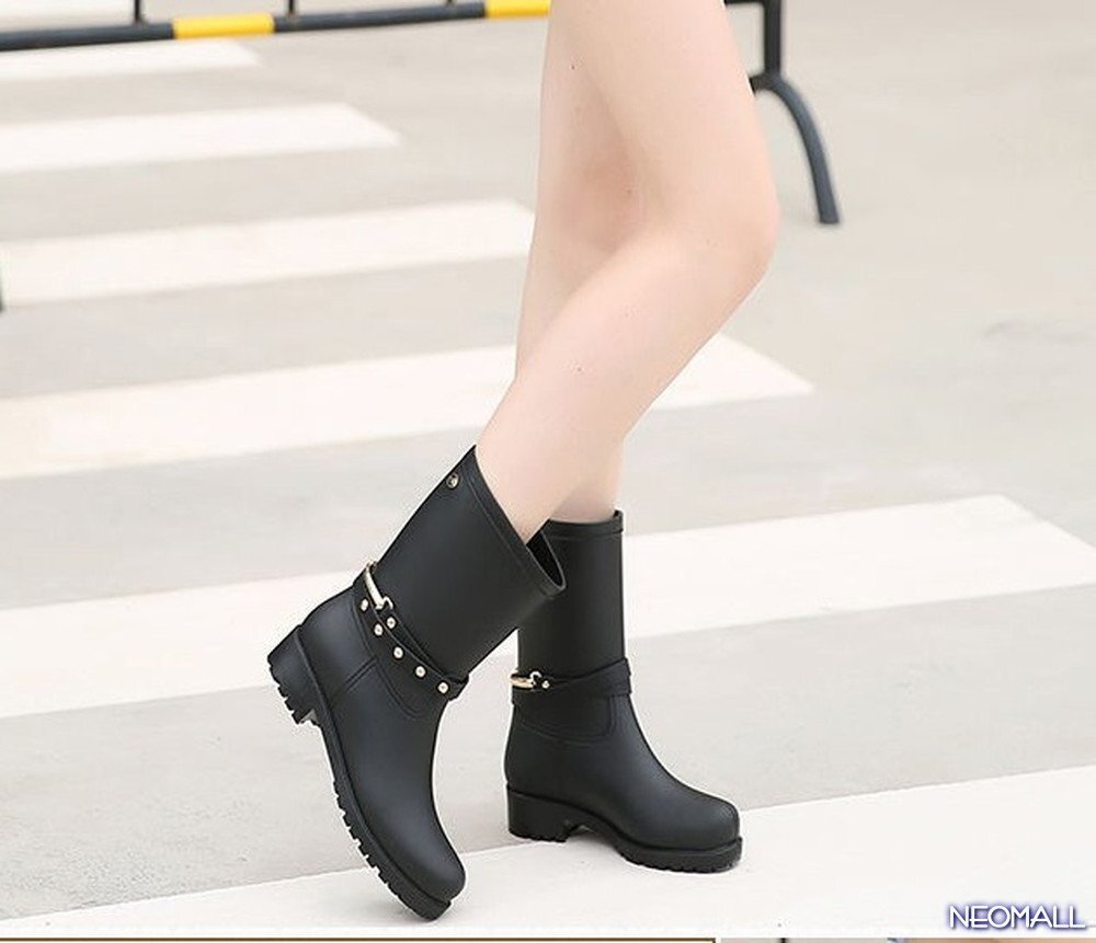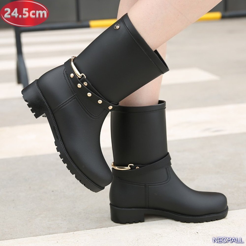 雨対策に☆ レディース お洒落な レインブーツ【490】 24.5cm ブラック レインシューズ 雨靴 梅雨対策 防滑 防水 雨 雪 晴れ兼用