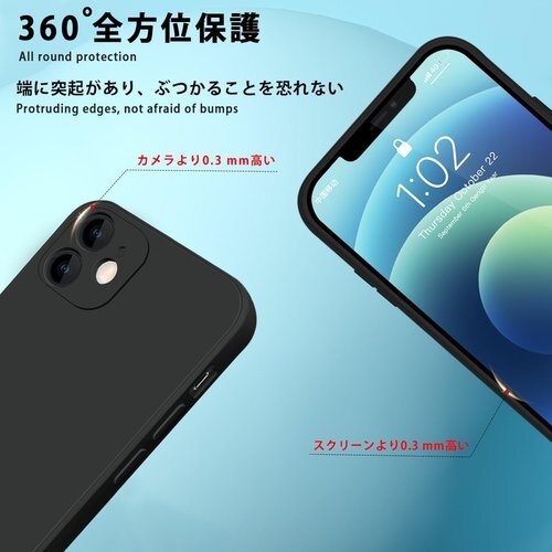 iPhone 12 mini ケース 液体シリコン 耐 格 保護カバー 黄変防止 軽量 5.4インチ用 ブラック 1084