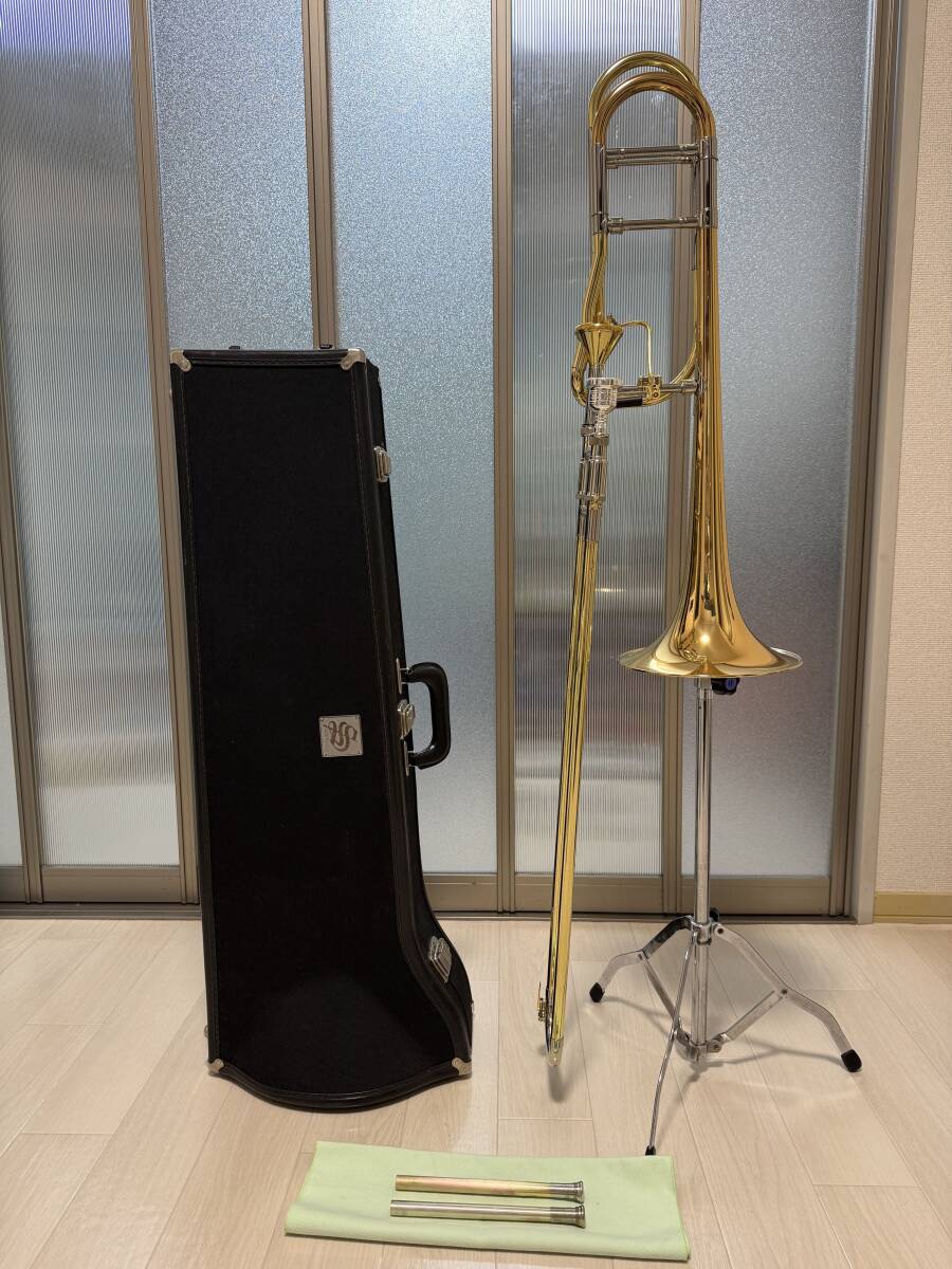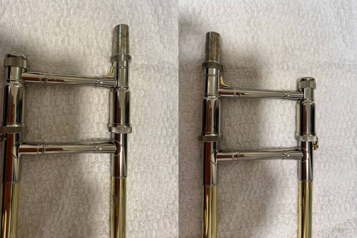 楽器の状態はスライド直管部分にラッカーの荒れがありますが、概ね良い状態です。