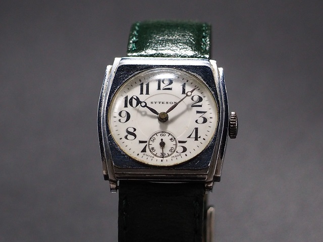 STTESON スイス製 アンティーク スモセコ レクタンギュラー  全数字文字盤 稼働確認済み 新品ベルト付き