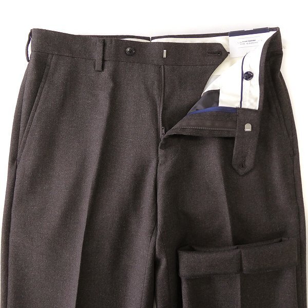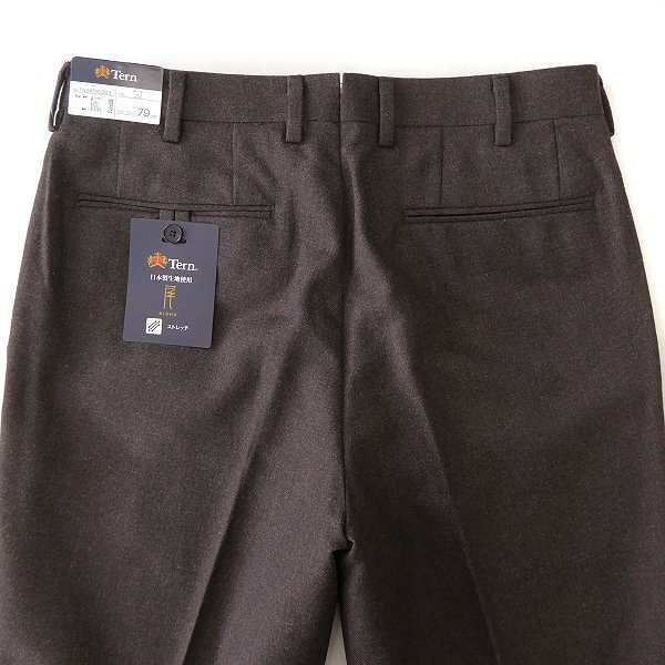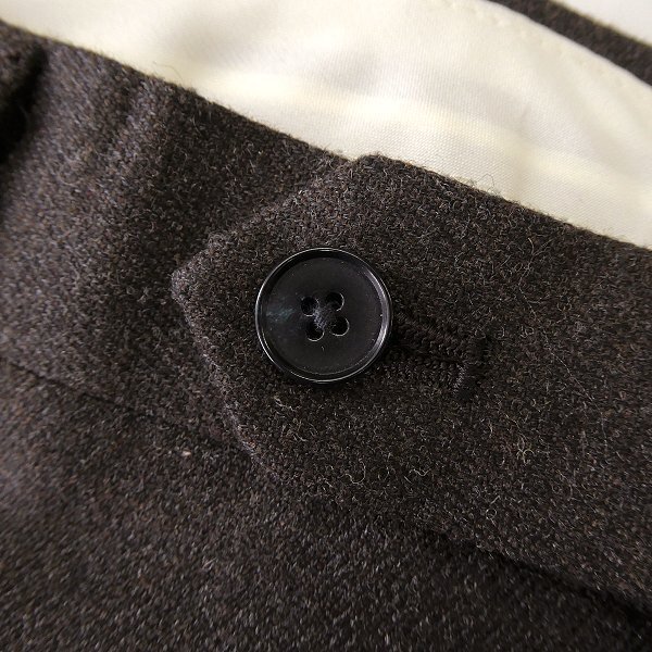 | 新品 未使用 紙タグあり ウエスト79cm(Mサイズ相当) ※写真は別サイズを使用している場合がございます※ ※商品に記載されたサイズ・寸法です※ ウエスト79cm(内回り1周) 股上25.5cm 股下91cm 裾幅20.5cm 腿幅29.5cm(股下10cm部分) 表地:ポリエステル42% 毛39% レーヨン15% ナイロン2% アクリル1% ポリウレタン1% 裏地:ポリエステル100% ブラウン |