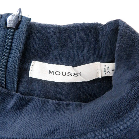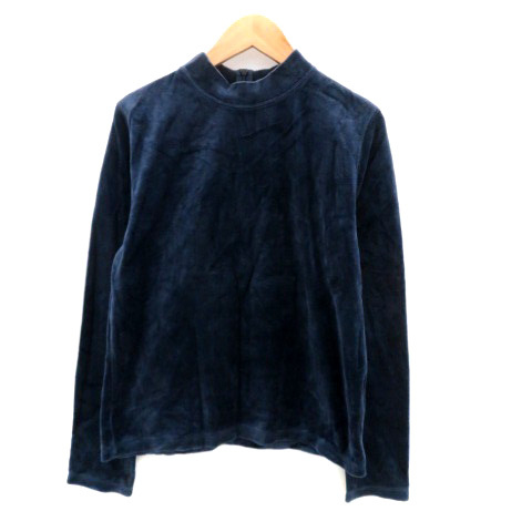 マウジー MOUSSY カットソー ハイネック 長袖 無地 ベロア F 紺 ネイビー /HO16 レディース