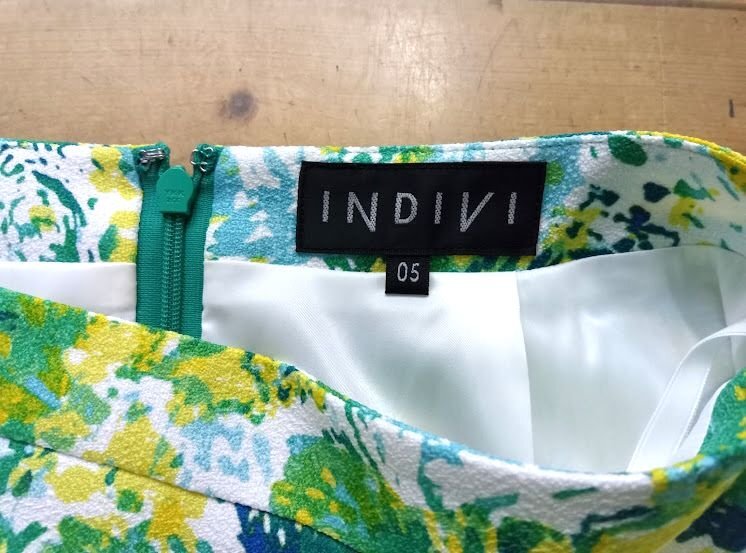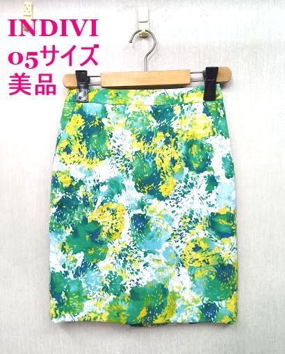 美品 ★INDIVI /インディヴィ ◎グリーン柄 スカート 05サイズ