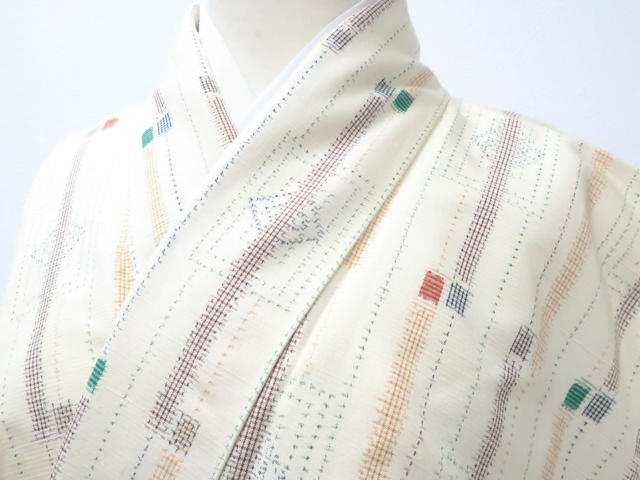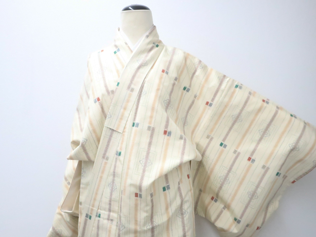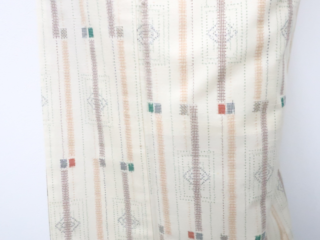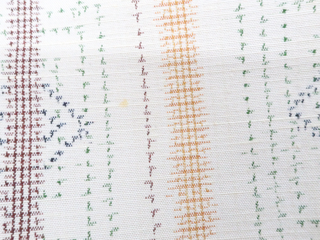 リサイクル商品のため、全体的に所々シミ汚れがございますが着用可能なお品です。 地色は希成です。 1枚目の画像が近いお色かと思われます。 素材は正絹です。 |