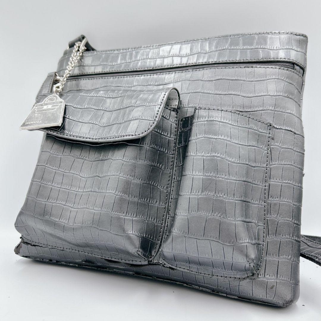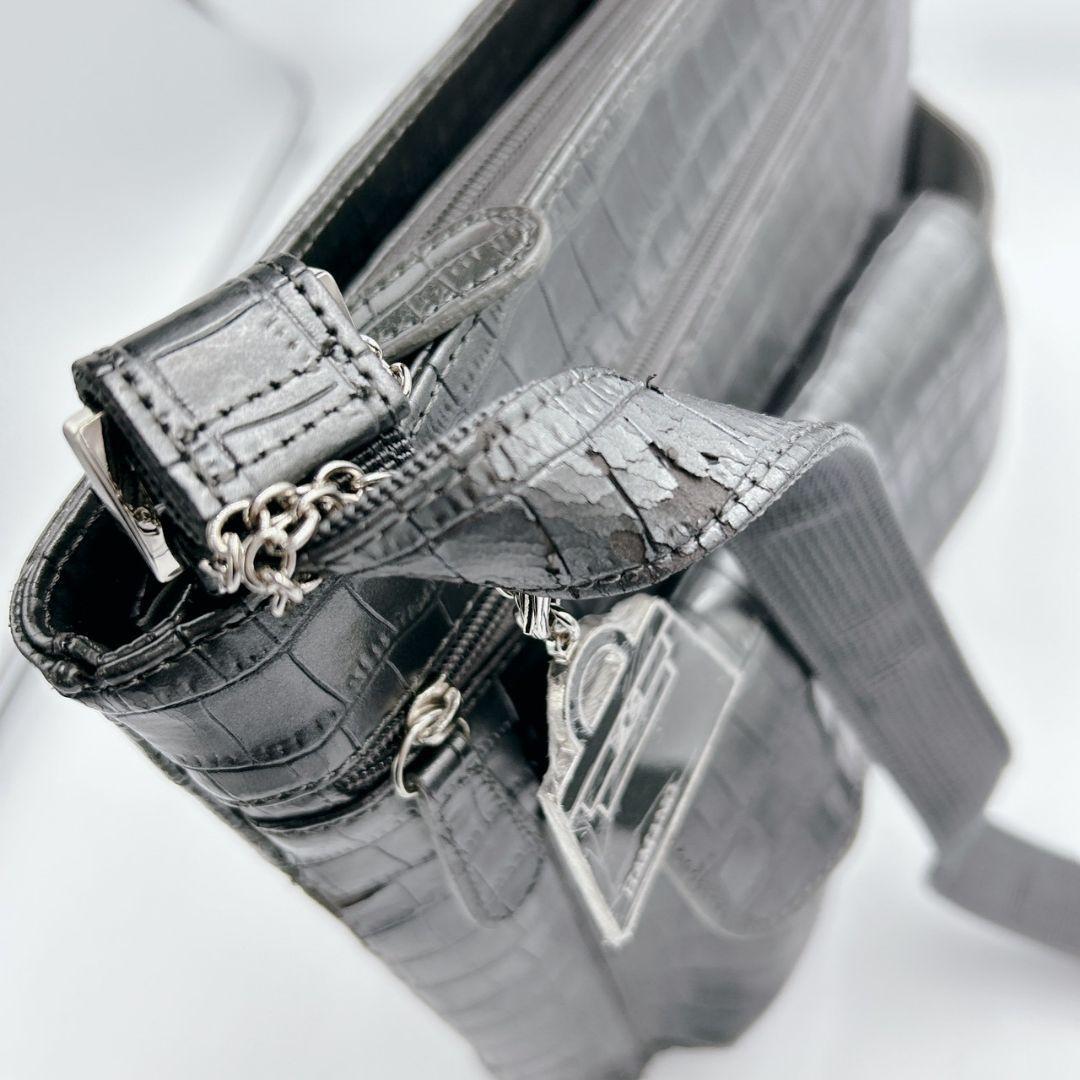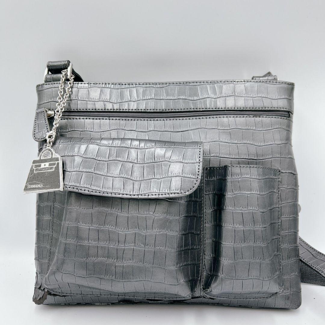 超希少デザイン!!クロコサコッシュ◎【ハマノ 傳濱野】サコッシュ ショルダーバッグ メッセンジャー ブラック 黒 クロコダイル 型押し 本革