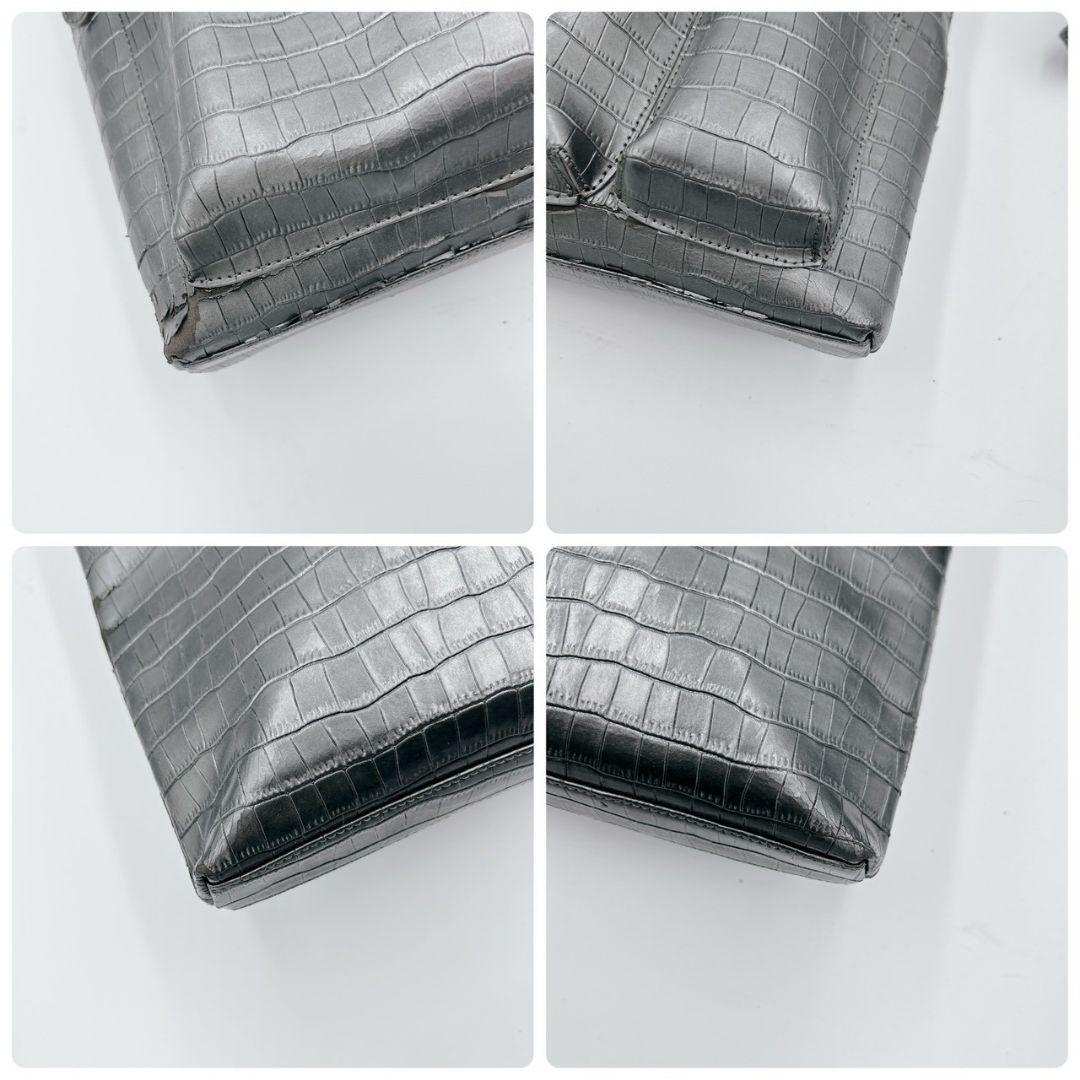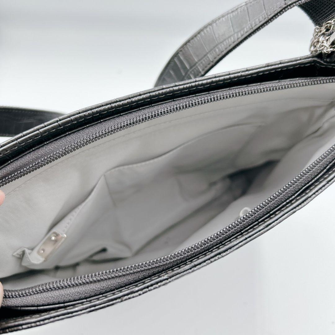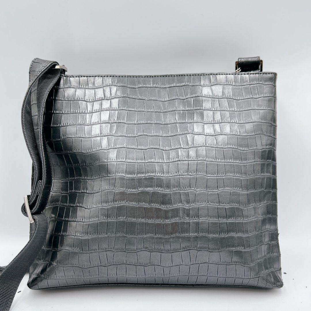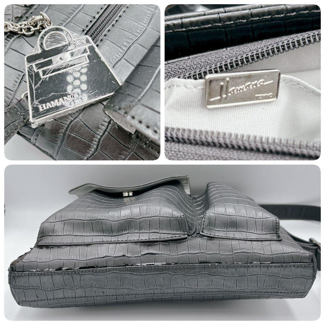 超希少デザイン!!クロコサコッシュ◎【ハマノ 傳濱野】サコッシュ ショルダーバッグ メッセンジャー ブラック 黒 クロコダイル 型押し 本革
