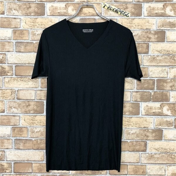 BODY WILD メンズ カットオフ Vネック 半袖Tシャツ L 黒
