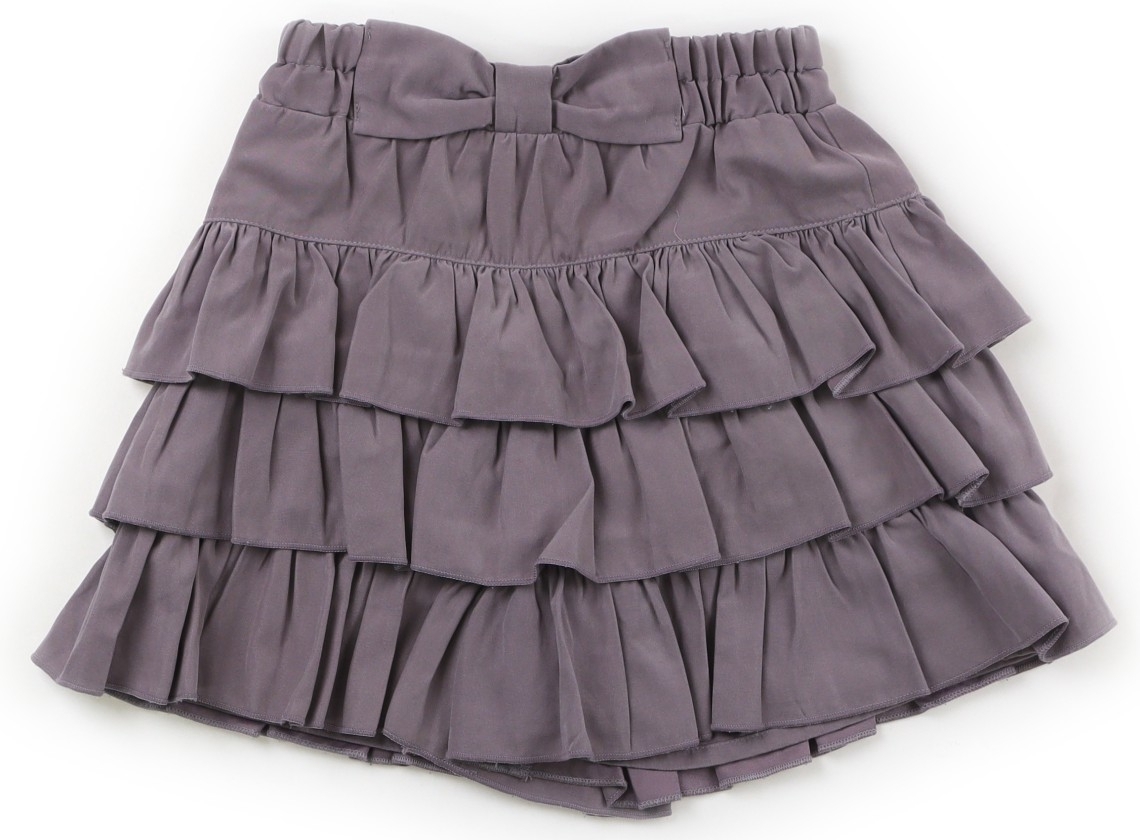 スウェード調生地。インナーパンツ一体型。ウエストは半分ゴムで交換穴があります。フリルの裾やウエストに細かい毛玉が複数ありますが、お手入れ次第でまだまだ普段着として活躍してくれそうです。