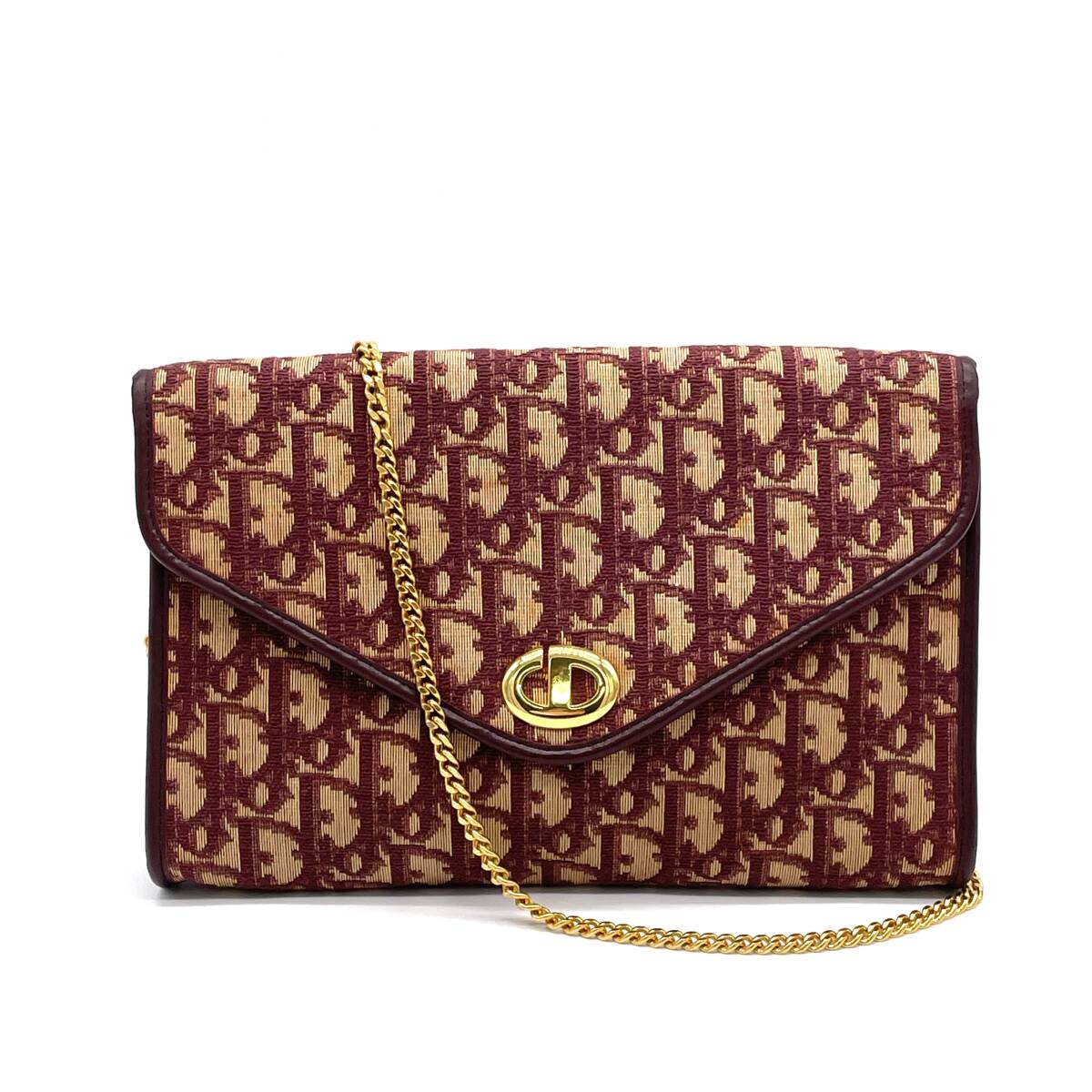 | Christian Dior トロッター ジャガード CDロゴ ショルダーバッグ チェーンショルダー ボルドー | |