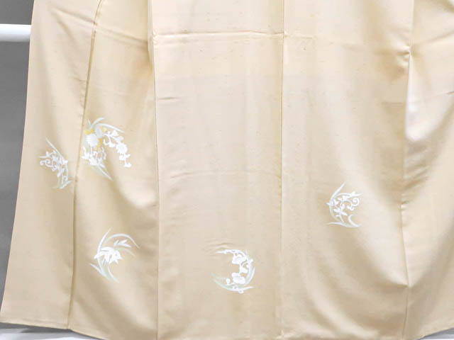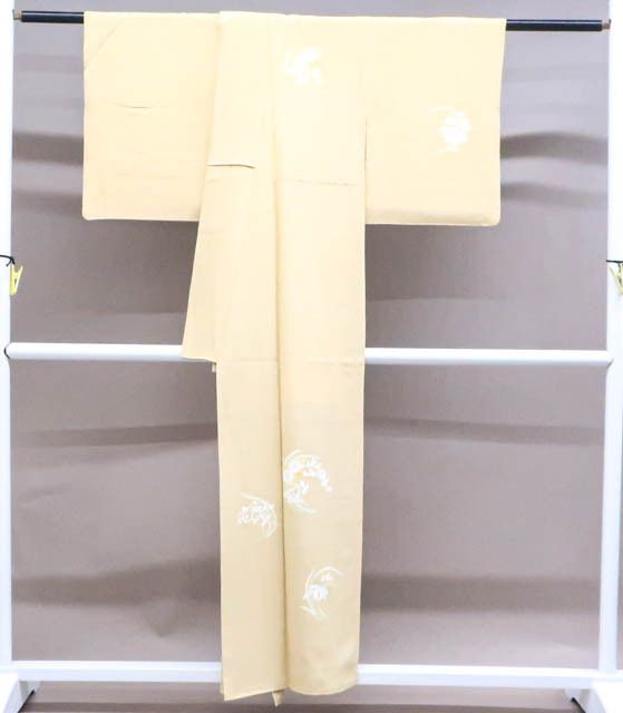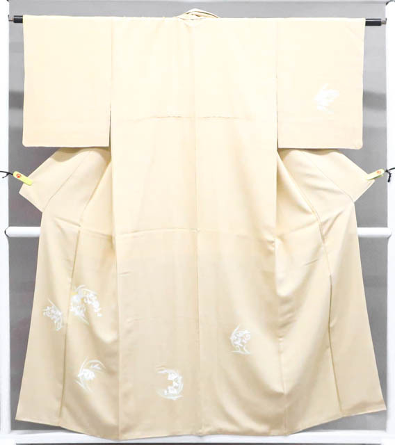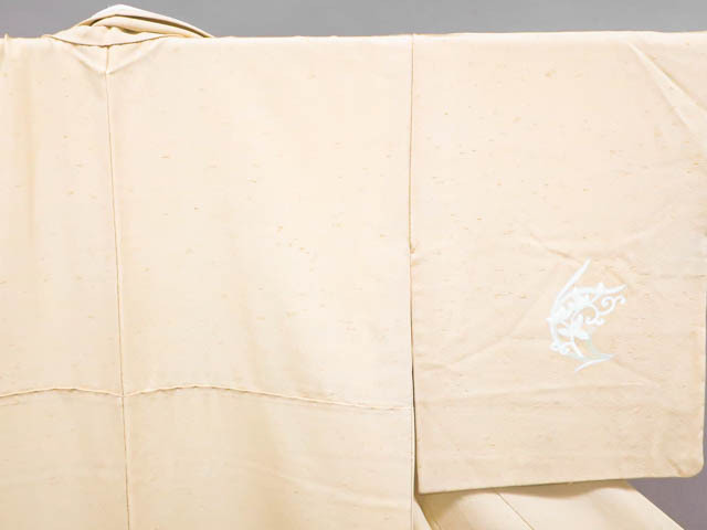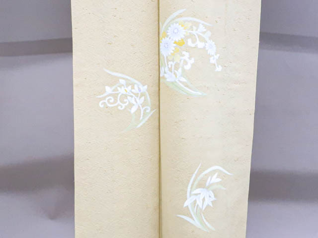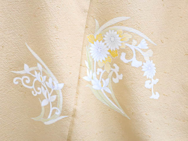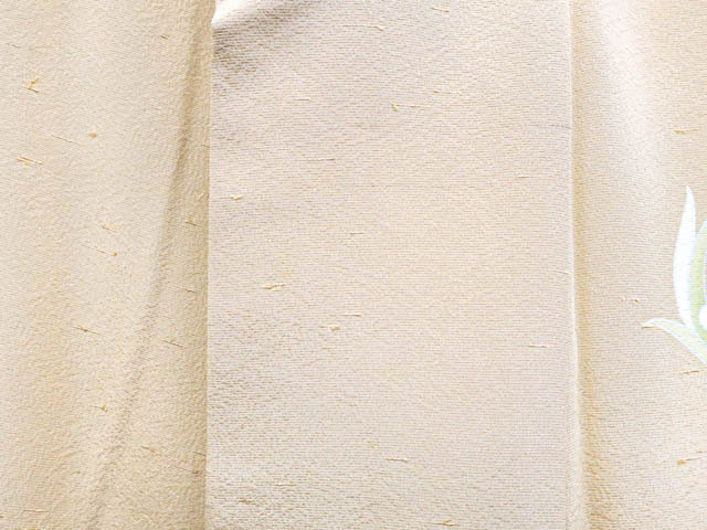 リサイクル商品ではございますが、大変良い状態のお品です。 地色は くすみクリームです。 1枚目の画像が近いお色かと思われます。 素材は正絹です。 |
