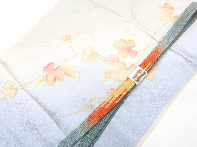 《京都一輝堂》【着物】 和装小物 帯締め 帯揚げ セット 帯締 帯揚 暈し 葉文 高麗組 金糸 25w04-5013