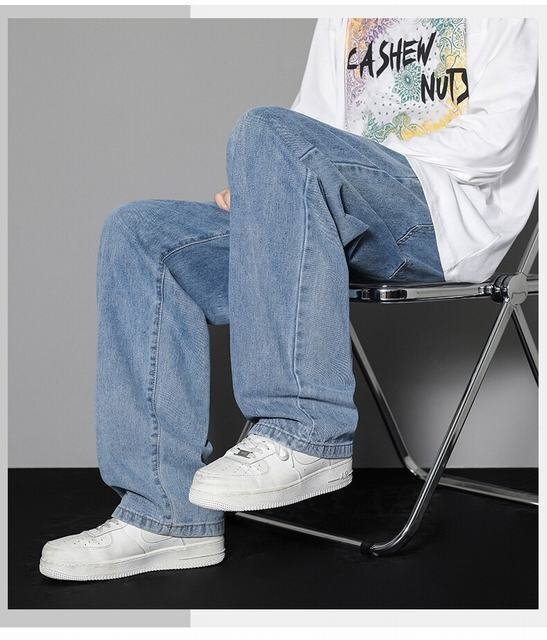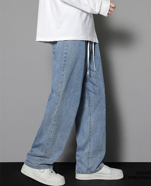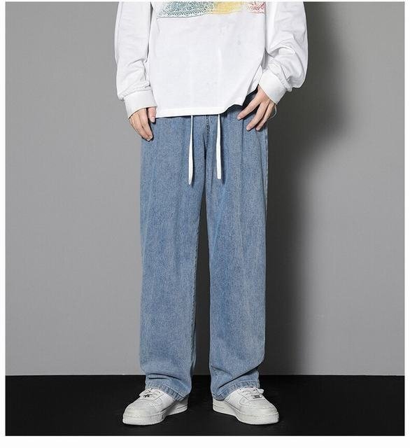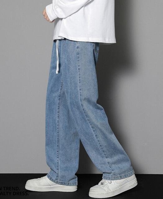 ワイドパンツ デニムパンツ メンズ バギー デニム パンツ ズボン ボトムス シンプル カジュアル ブルー L