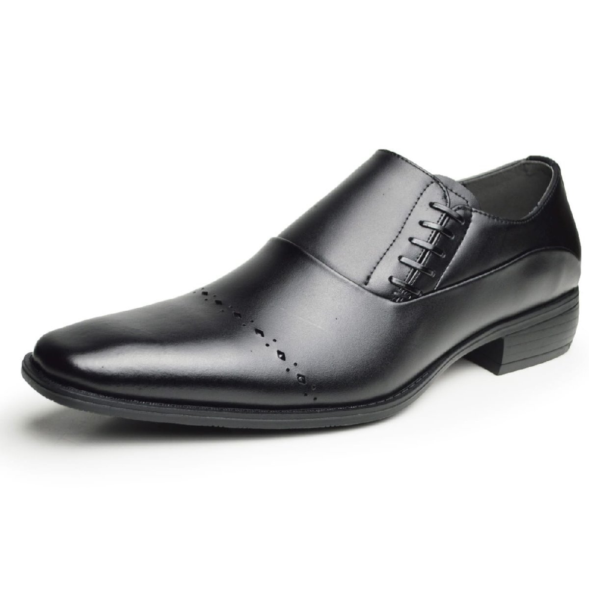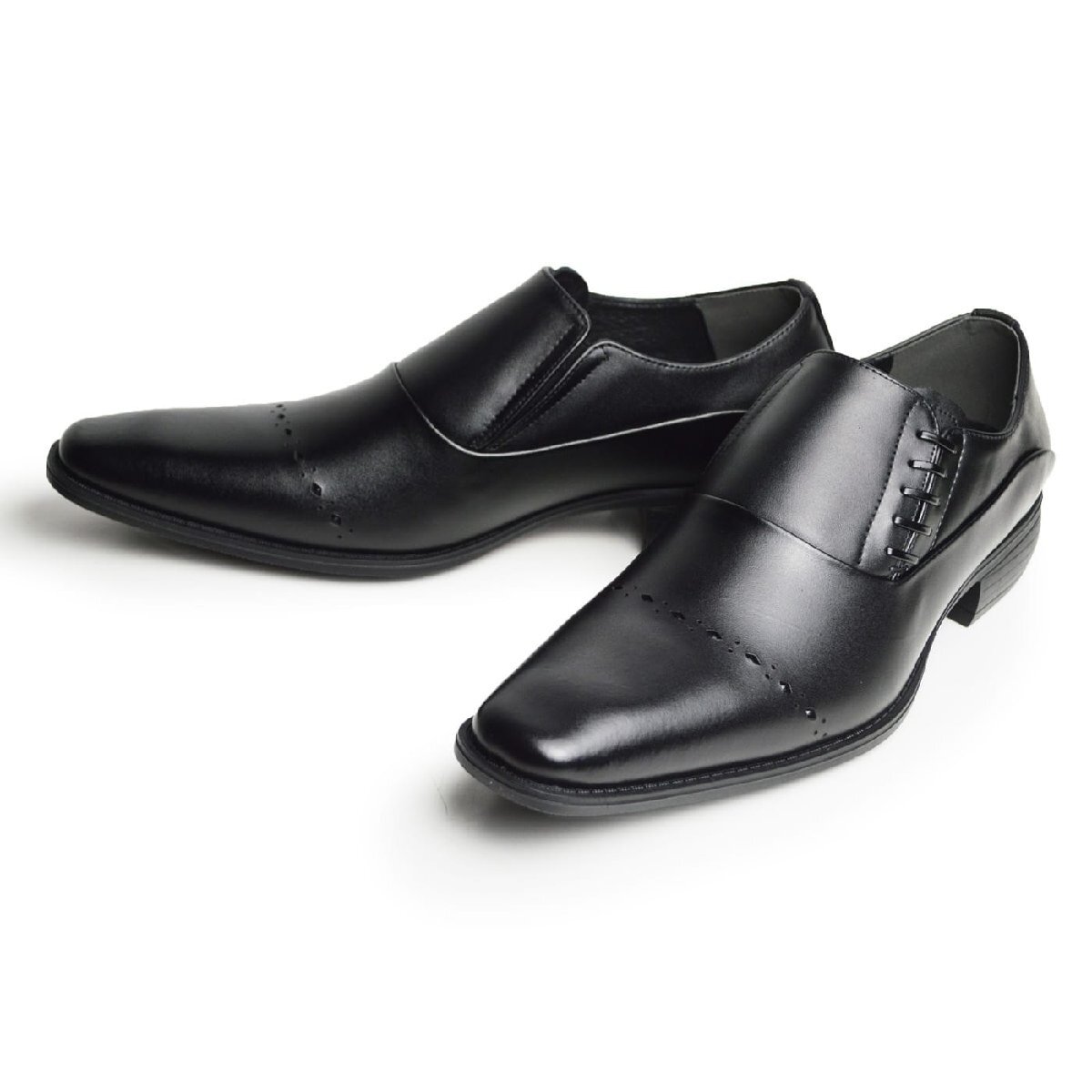 新品■27cm ビジネスシューズ 革靴 サイドゴア スリッポン 飾り紐 脚長 スクエアトゥ ロングノーズ 2E 日本製 フォーマル 紳士靴