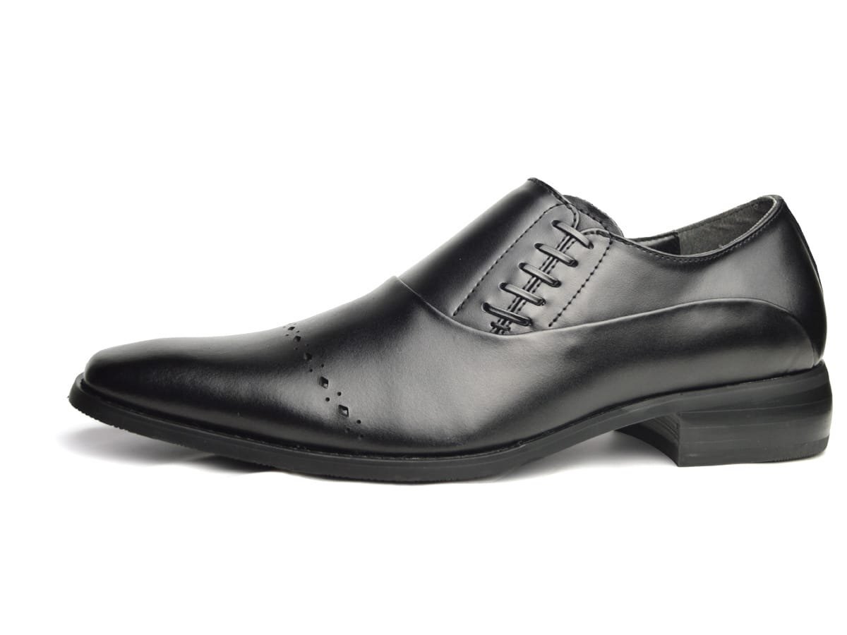 ヒールから甲までを覆う一体感あるアッパーと、ストレートチップ部分のパンチング加工が艶ある大人の洒落感を演出。