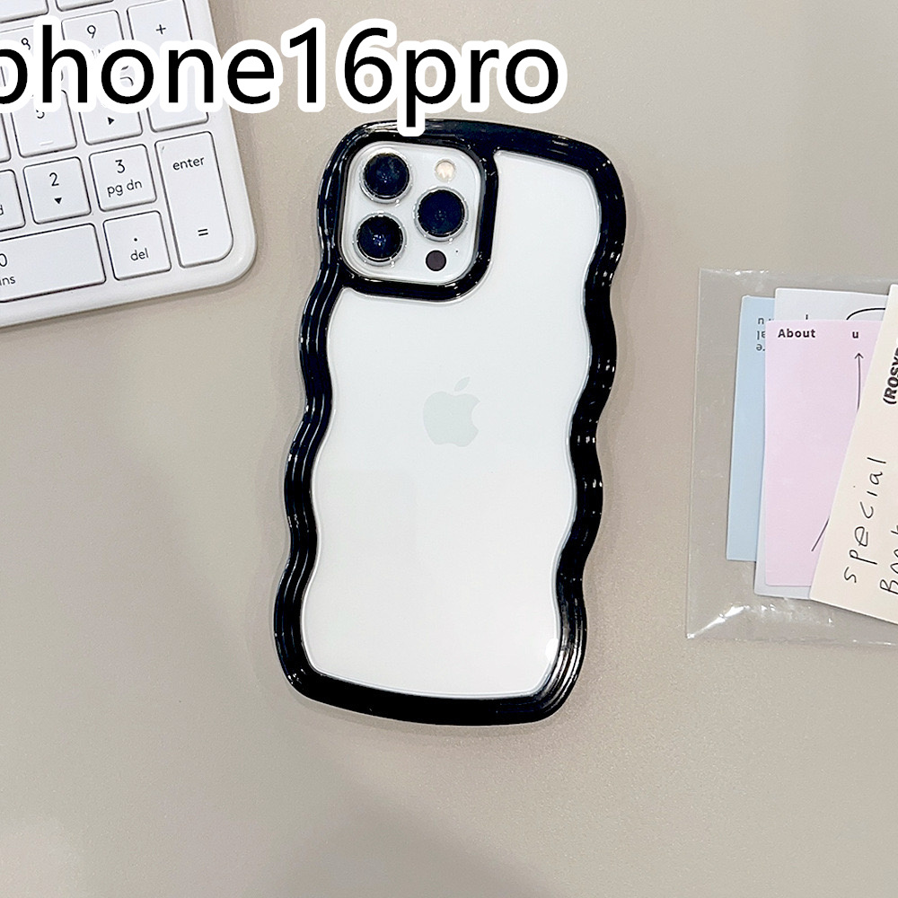 iphone16proケース カーバー TPU 可愛い 波型 お洒落 軽量 ケース 耐衝撃高品質ブラック