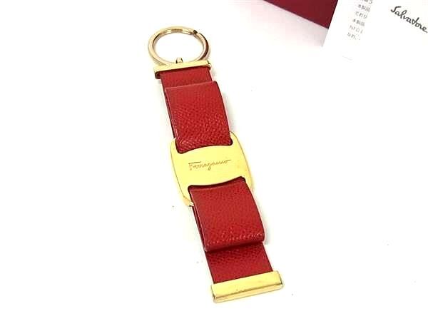 1円 Salvatore Ferragamo フェラガモ IR-22D579 ヴァラリボン レザー キーリング チャーム キーホルダー レディース レッド系 FR6767