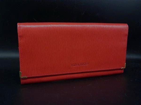 ■美品■ NINA RICCI ニナリッチ レザー 二つ折り 長財布 ウォレット 札入れ 小銭入れ カード入れ レディース レッド系 DJ6020