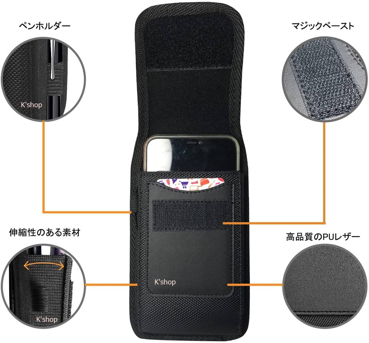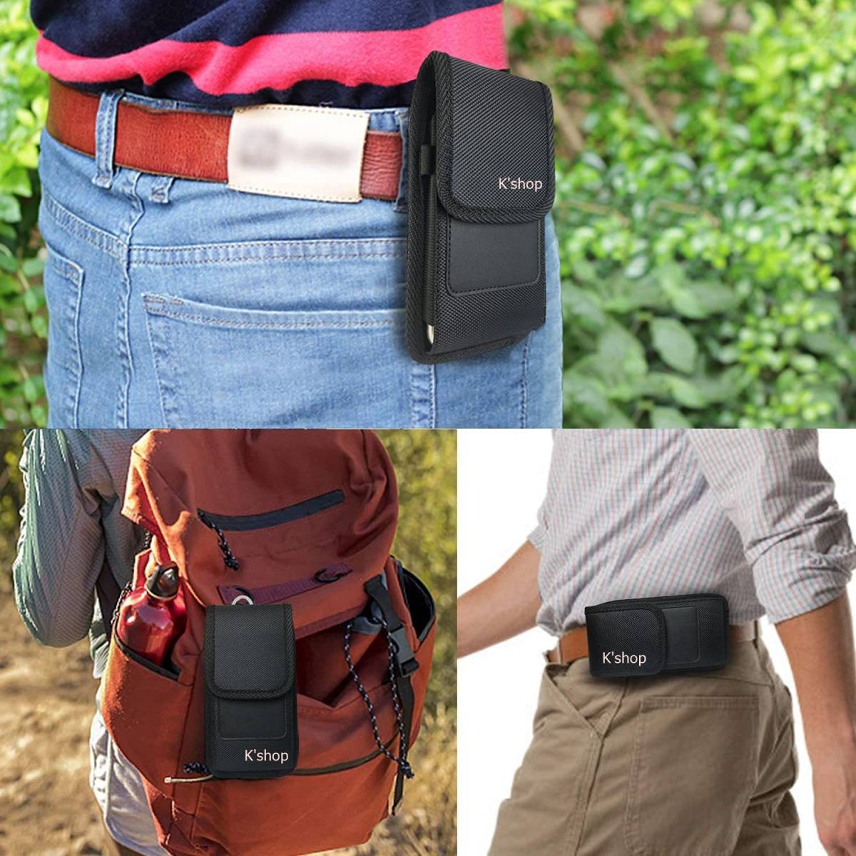 ● スマホポーチ メンズ 【 5.5-6.9インチまでのスマホ対応 】 ベルトケース ベルト通し付き 黒 縦型 Apple:iPhone 12 Pro Max, iPhone 6/6s/7/8/ Plus, Galaxy S20+/S21 FE/S20 FE, Galaxy S20 Ultra/Note20 Ultra/Note10 Lite リュック Android ●