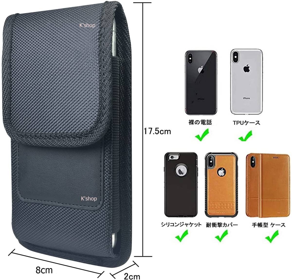 ・おおよその内寸サイズ:高(約175mm)×横(約80mm×厚み20mm)厚みは伸縮します)
