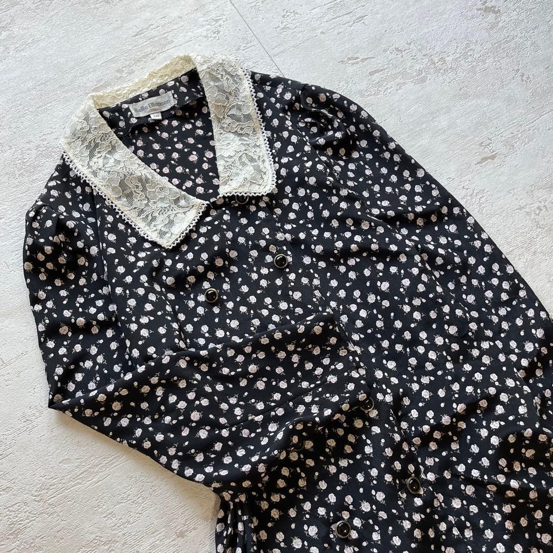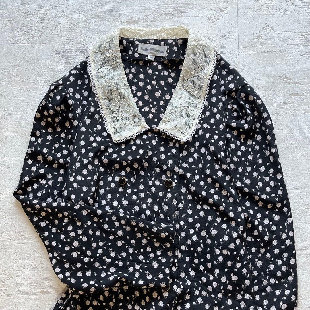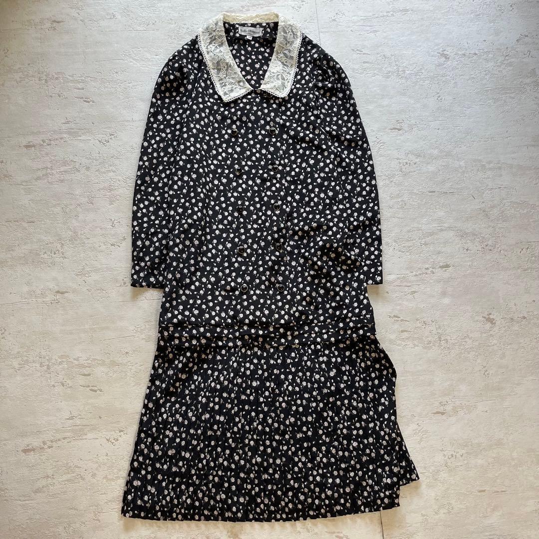 繊細なレース襟とプリーツスカートの組み合わせが上品で、