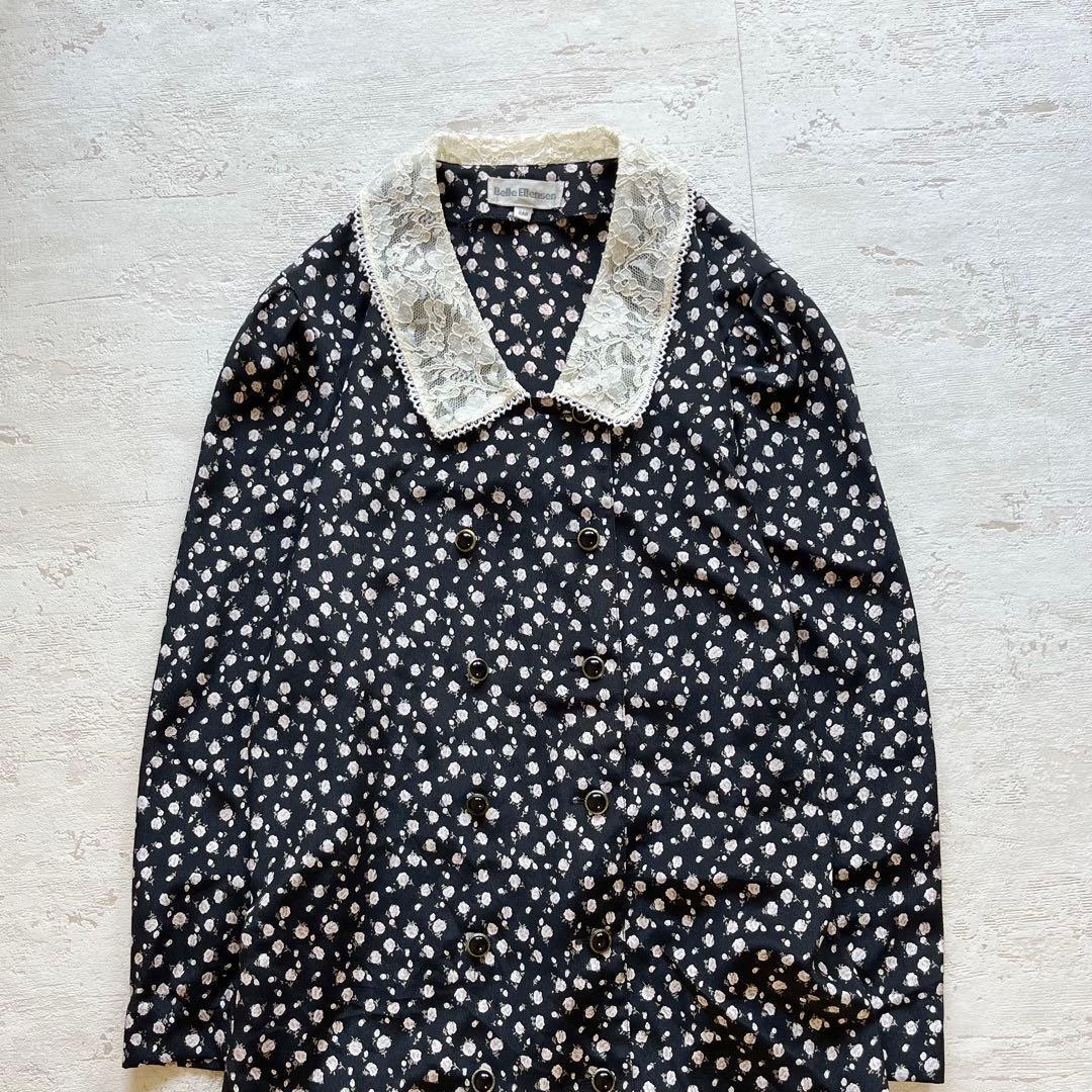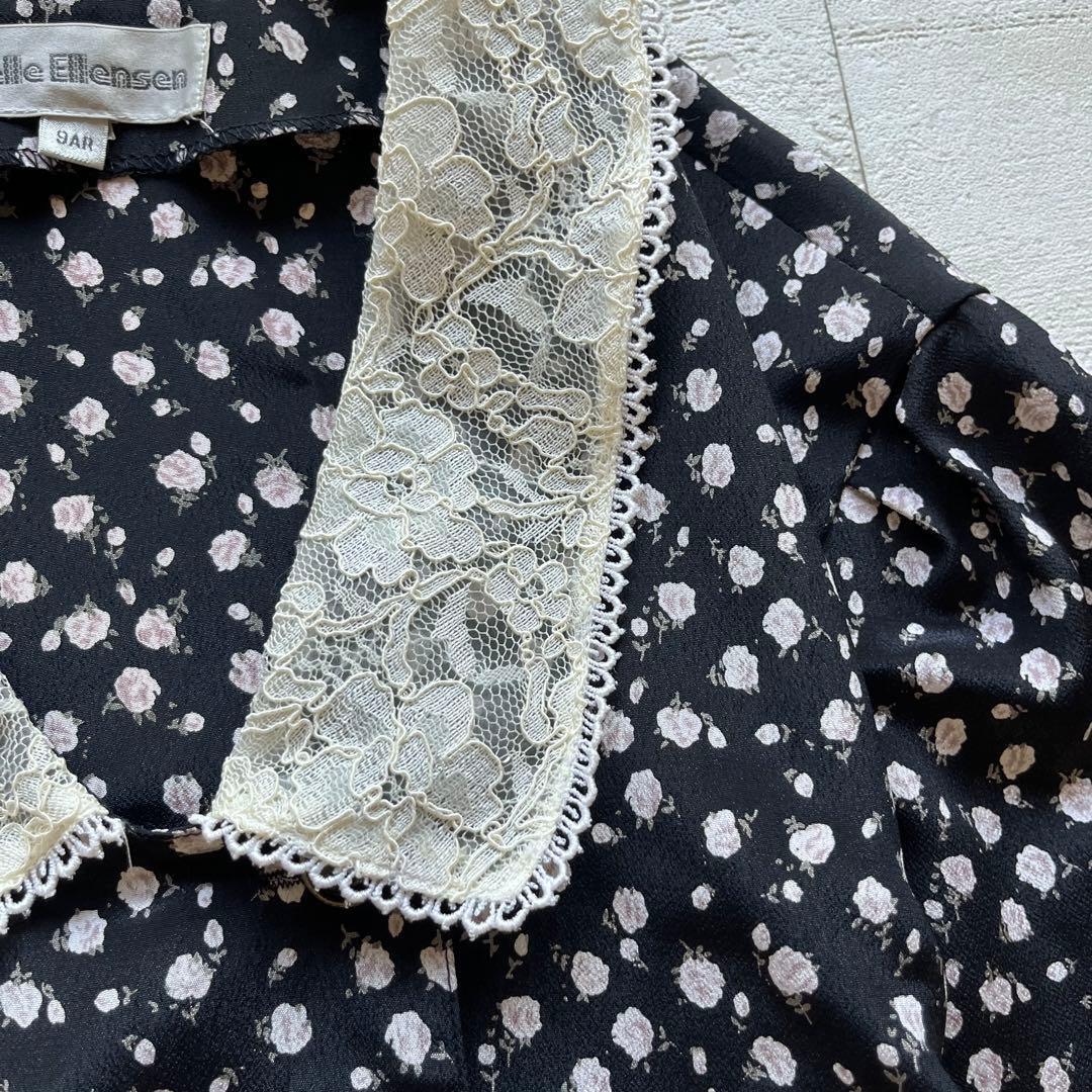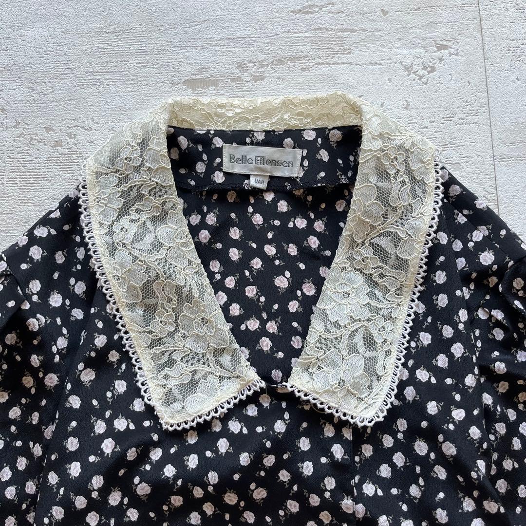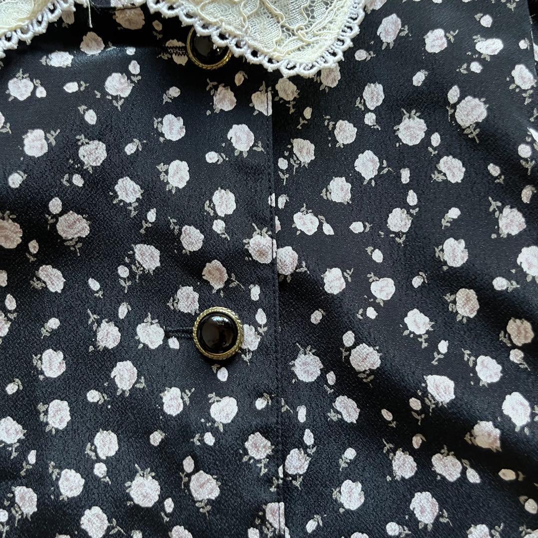 繊細なレース襟とプリーツスカートの組み合わせが上品で、