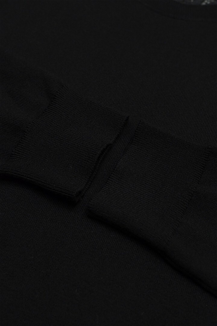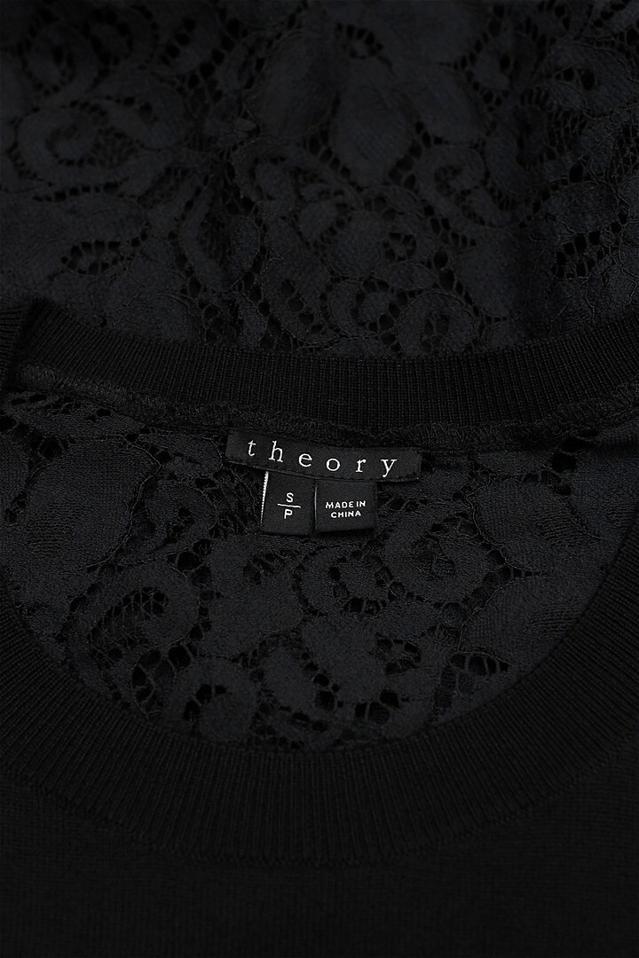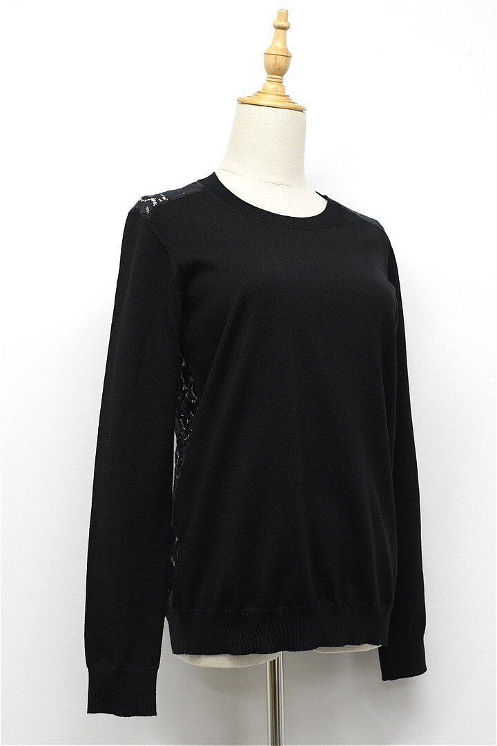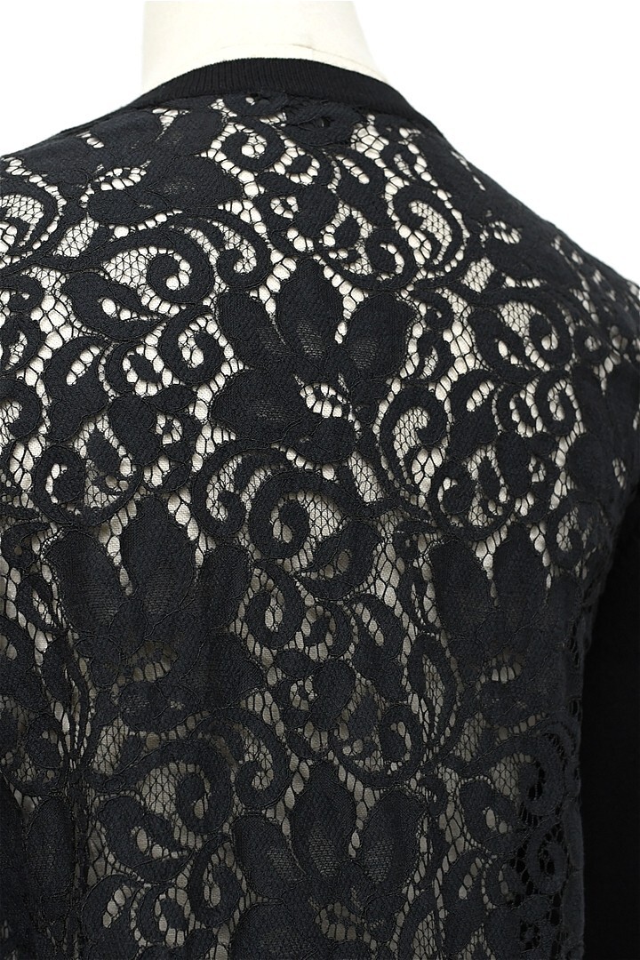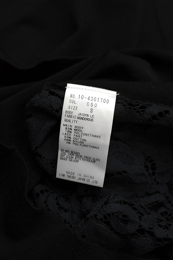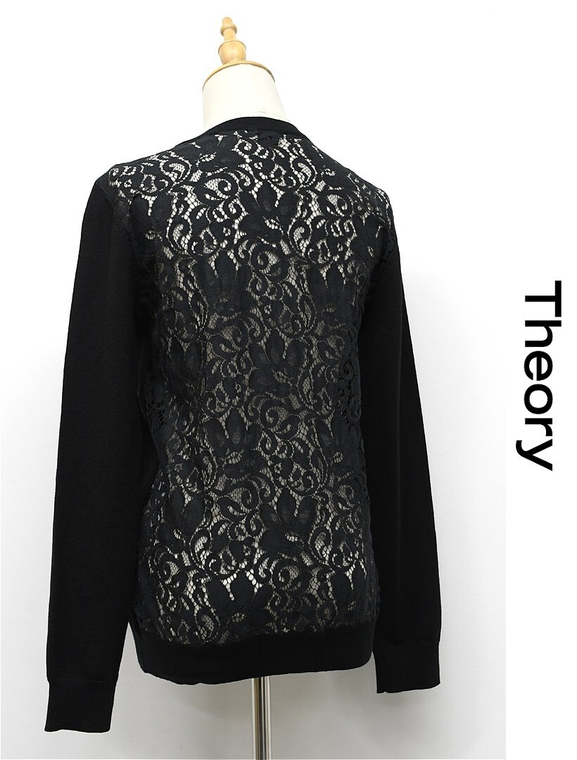 N420/美品 theory ニットブラウス バックレース 生地切替 花柄 シースルー ストレッチ クルーネック S 黒/ JAIDYN LC / WONDEROUS