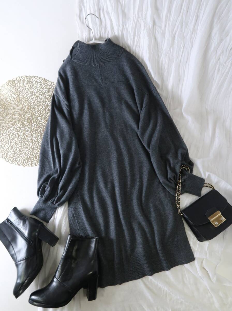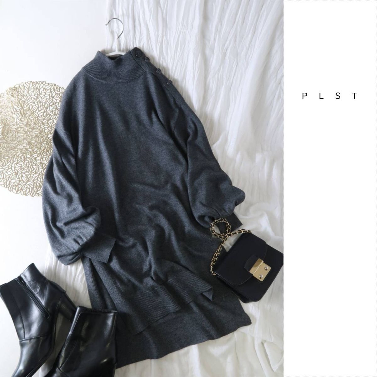 プラステ PLST☆洗える ウール混 ハイネック ニットチュニック Mサイズ☆E-M 6077