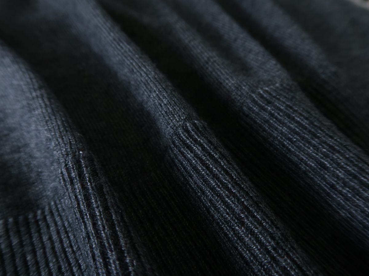 合繊糸にウールをブレンドしてストレッチ糸を加えた光沢性のあるニット素材。