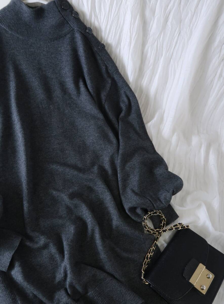 左肩は釦開きでアクセント。(上部2つ目まで開閉可能。)