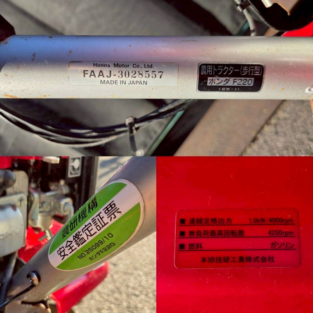 【婀】Honda ホンダ 管理機 小型 耕運機 こまめ F220 ガソリン J24DE26