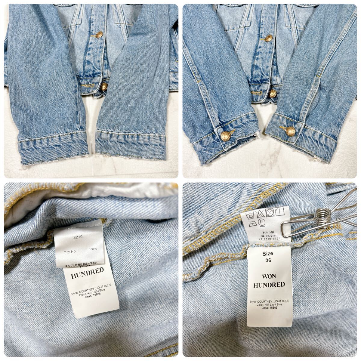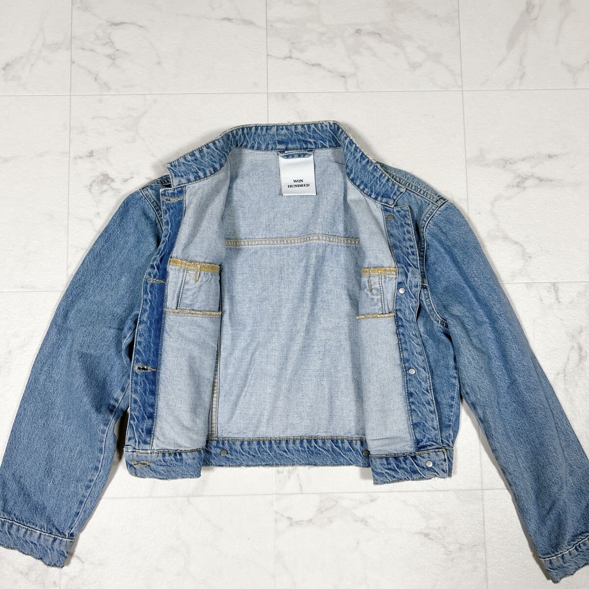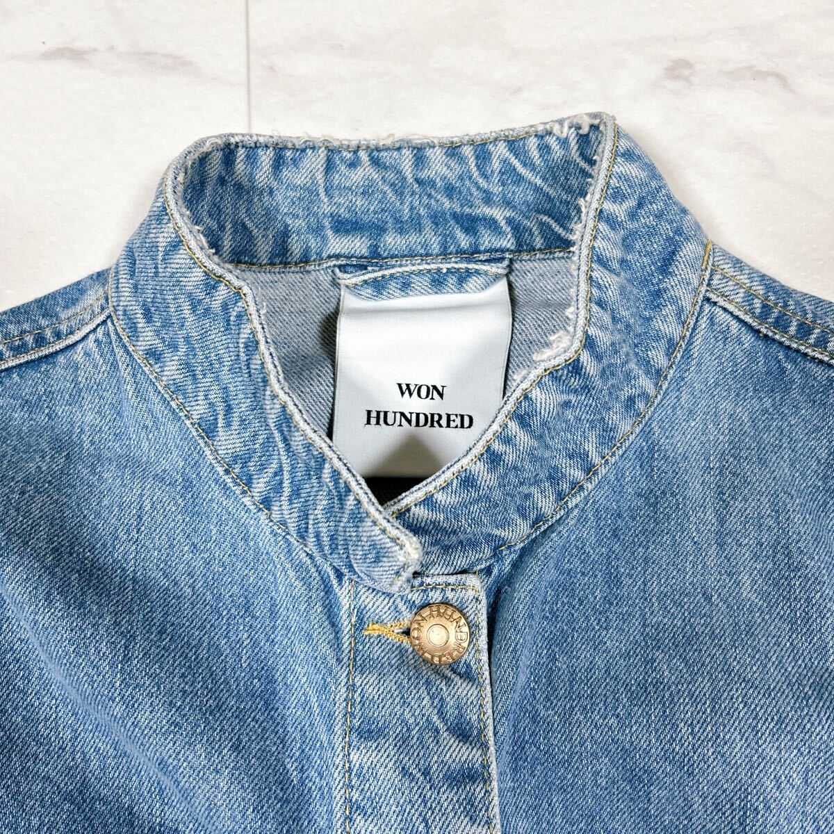 美品 WON HUNDRED ウォンハンドレッド デニム ダメージ クラッシュ Gジャン ロゴボタン 金釦 36 レディース スタンドネック アウター ジャケット