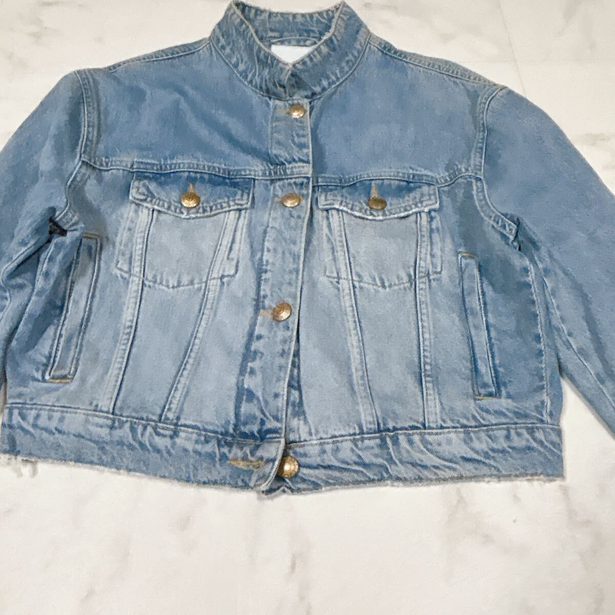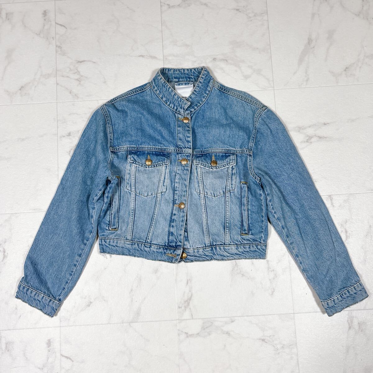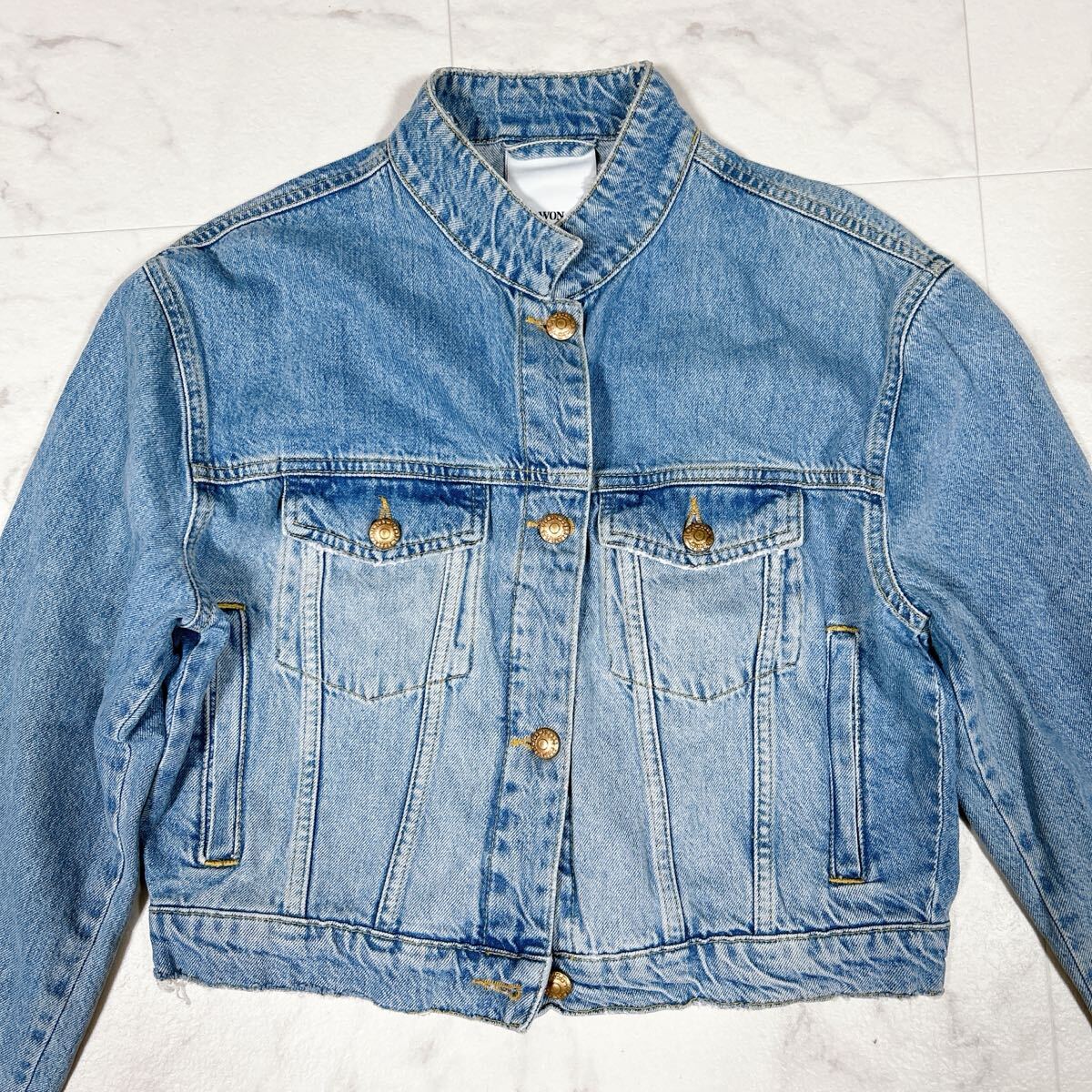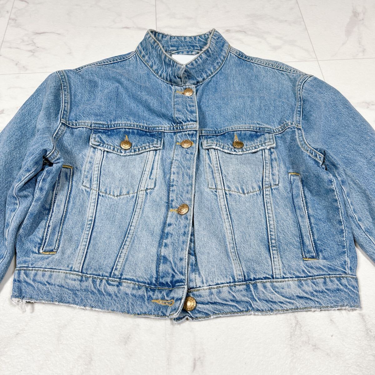 美品 WON HUNDRED ウォンハンドレッド デニム ダメージ クラッシュ Gジャン ロゴボタン 金釦 36 レディース スタンドネック アウター ジャケット