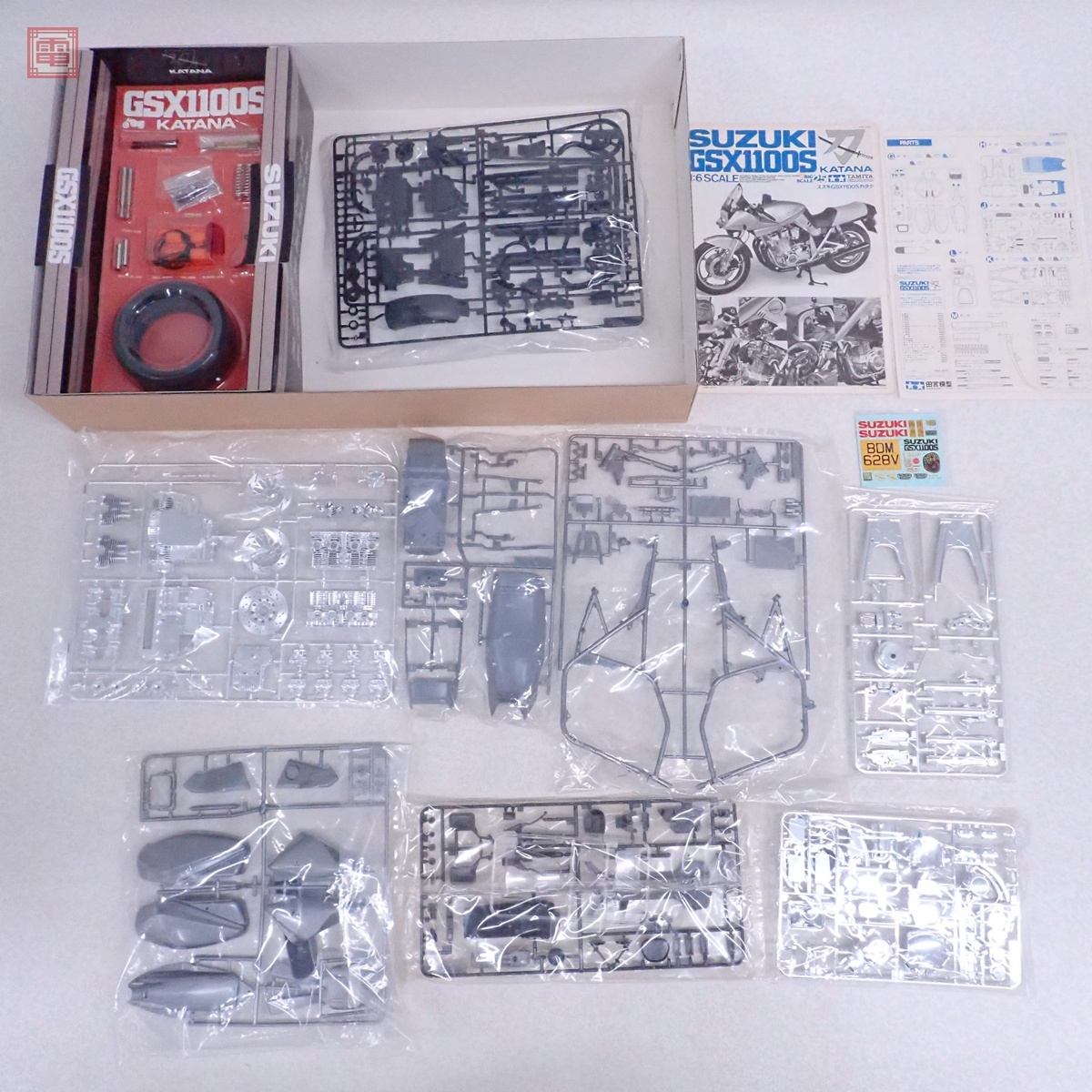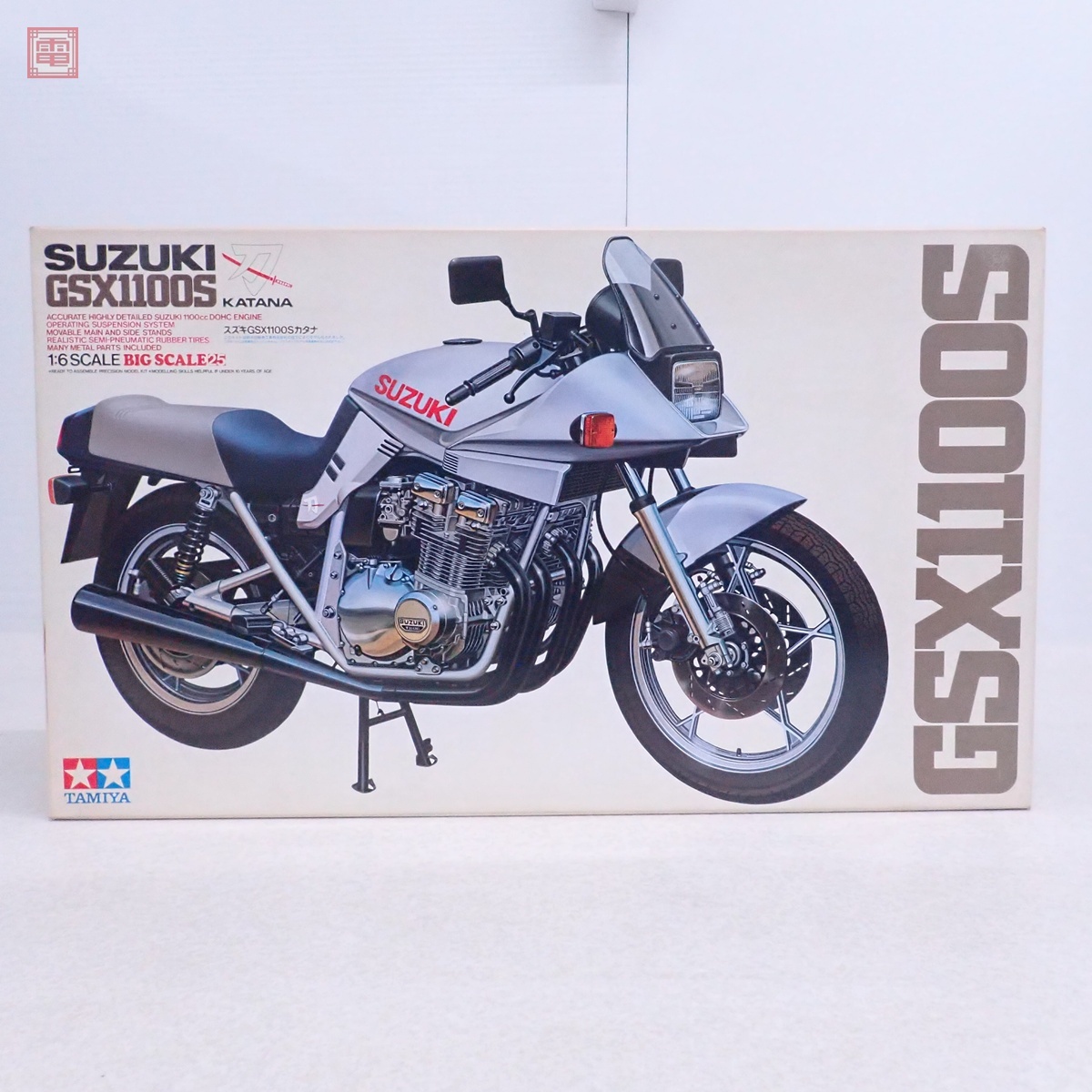未組立 タミヤ 1/6 スズキ GSX1100S カタナ ITEM 16025 ■外箱にスレ、汚れ、変色、タバコ臭があります。 ■内袋は未開封です。 ■パーツにランナー外れがあります。 ■説明書に変色があります。 ■写真のものが全てです。付属物の有無や状態については写真からご判断ください。 ■付属物については細かいチェックはしておりませんので、万が一、欠品があったり余計な物が入っていたとしてもご了承ください。 ■商品到着後、当店の保証期間中は、商品及び箱や取説、付属品などを1つでも廃棄や破損をしないようにお願い致します。廃棄や破損をした場合、商品に問題があった場合でも対応や返金などの対処ができなくなります。 ■商品によりますが、発売されてから10年以上経過している中古品である事をご理解頂いた上でご入札をお願い致します。なお、新品や美品、また特記事項がある場合は別途明記します。 | |||