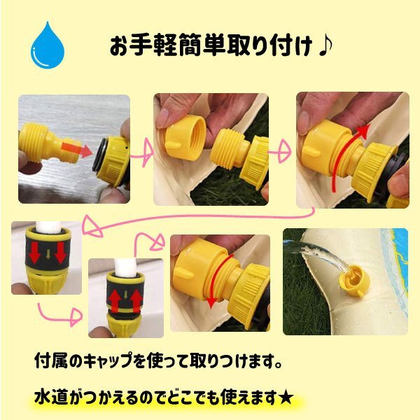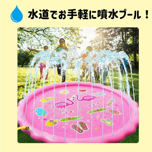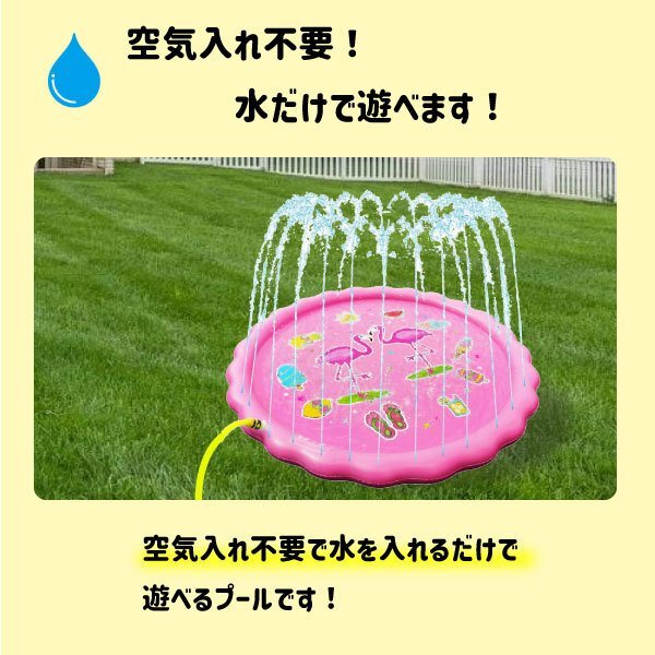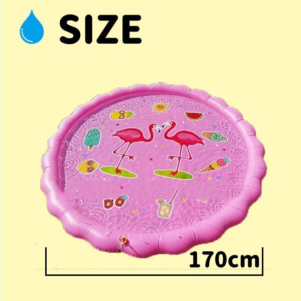 | ☆噴水 フラミンゴ プール 170cm 【商品名】 噴水 フラミンゴ プール 【素材】 PVC 【サイズ】 直径:170cm 【商品内容】 本体 バルブ *ホースは付属しません 【この商品の特徴】 ◆お手軽に楽しめる噴水プールです。空気入れいらずで水圧により噴水が楽しめます♪ ◆たたむとコンパクトサイズになり、ちょっとしたリゾートや夏の旅行に携帯するのに便利★ ◆直径170cmと大きいので大人もワンちゃんも楽しめます!友達みんなで遊んでもいいですね! ◆かわいいフラミンゴ柄で暑い日でも楽しく噴水水遊び! | ||||