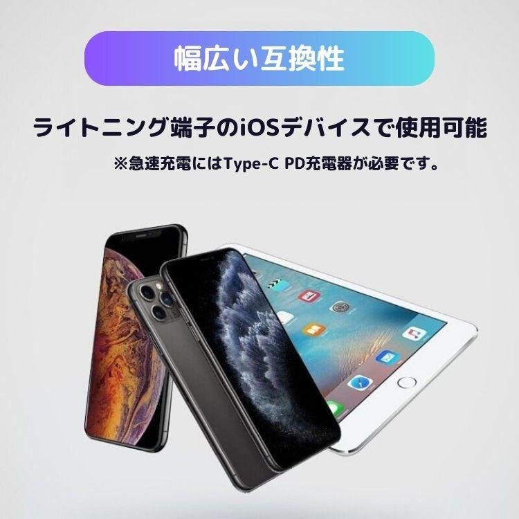 PD27W対応の急速充電ケーブル、iPhone・iPadに最適!高耐久素材と安全設計を採用し、充電・データ転送の両方に対応した高性能ケーブルです。
