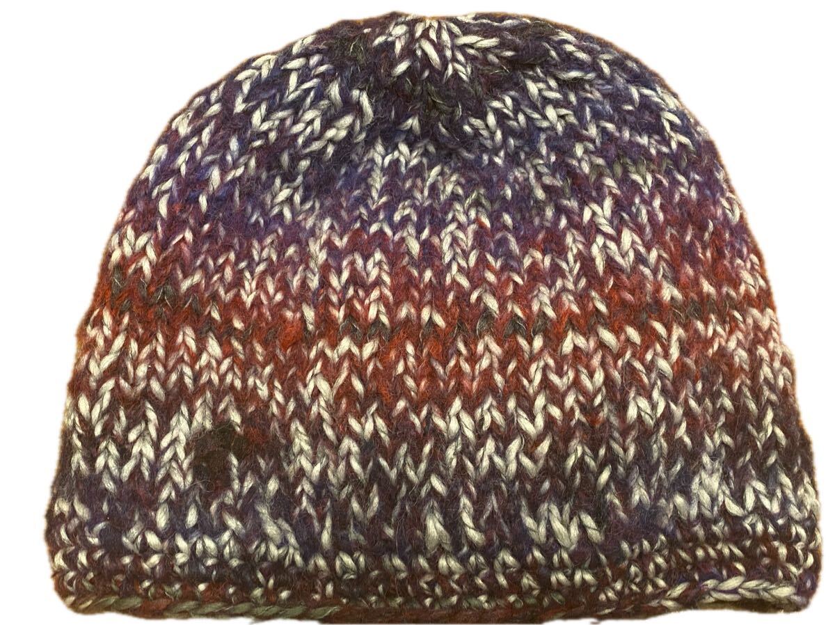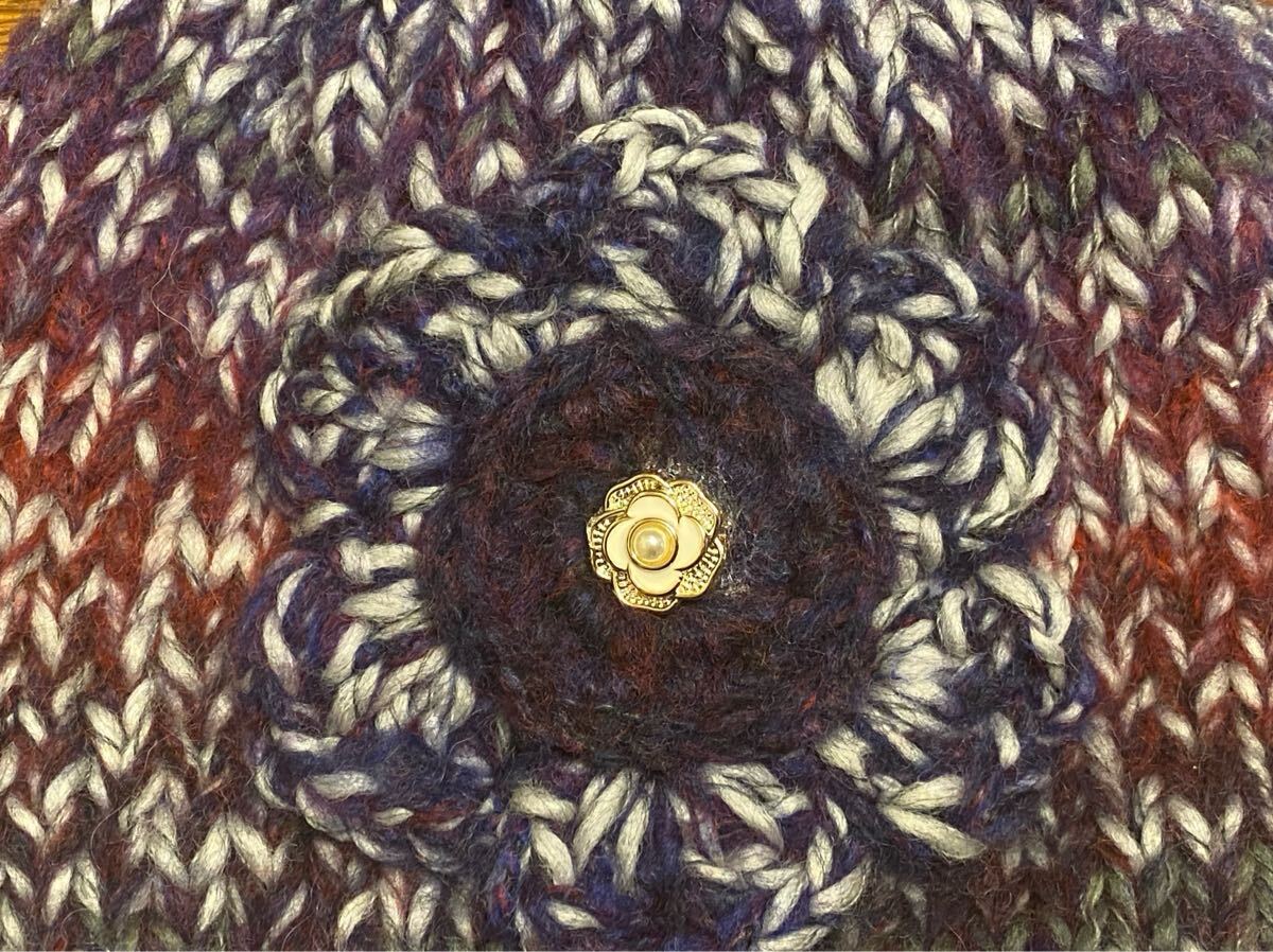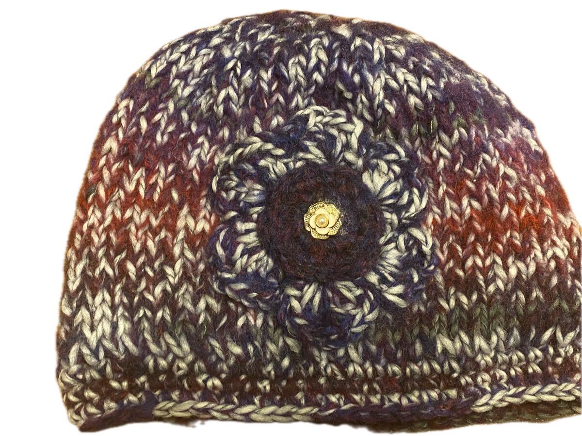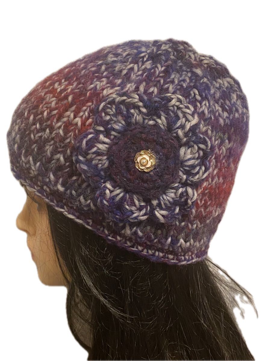 手作りの段染めモヘア糸で編んだニット帽子になります。